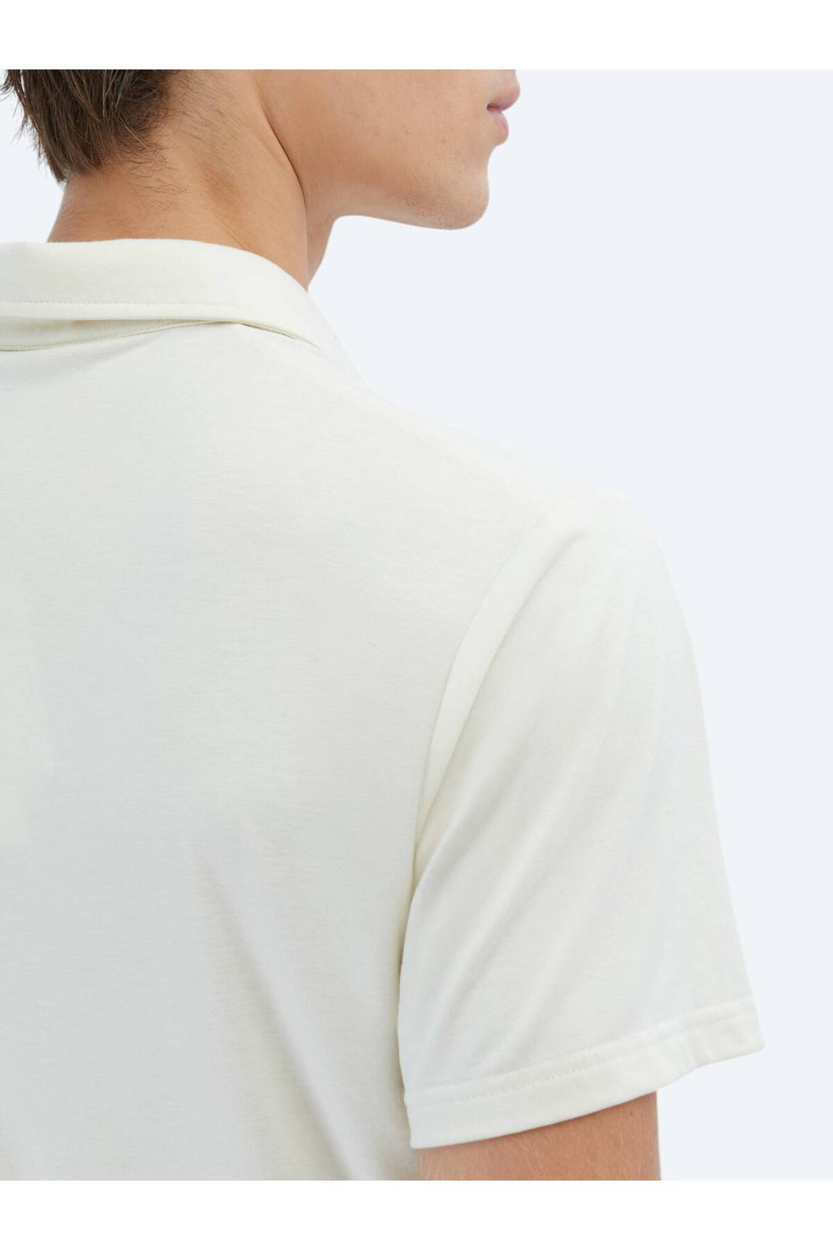 کیپ تیشرت یقهدار ساده و سازگار با محیط زیست به رنگ سفید مایل به کرم