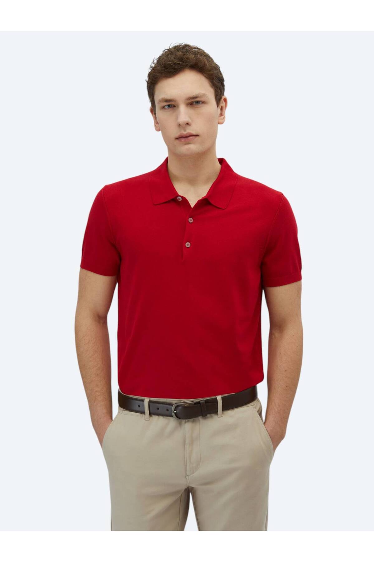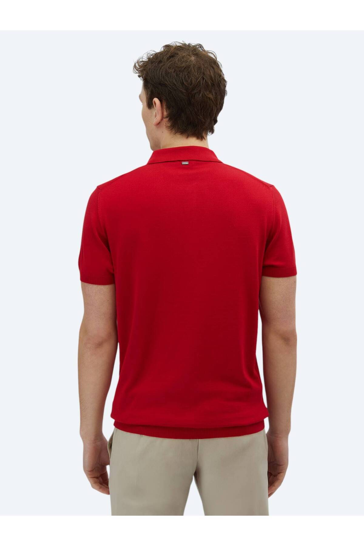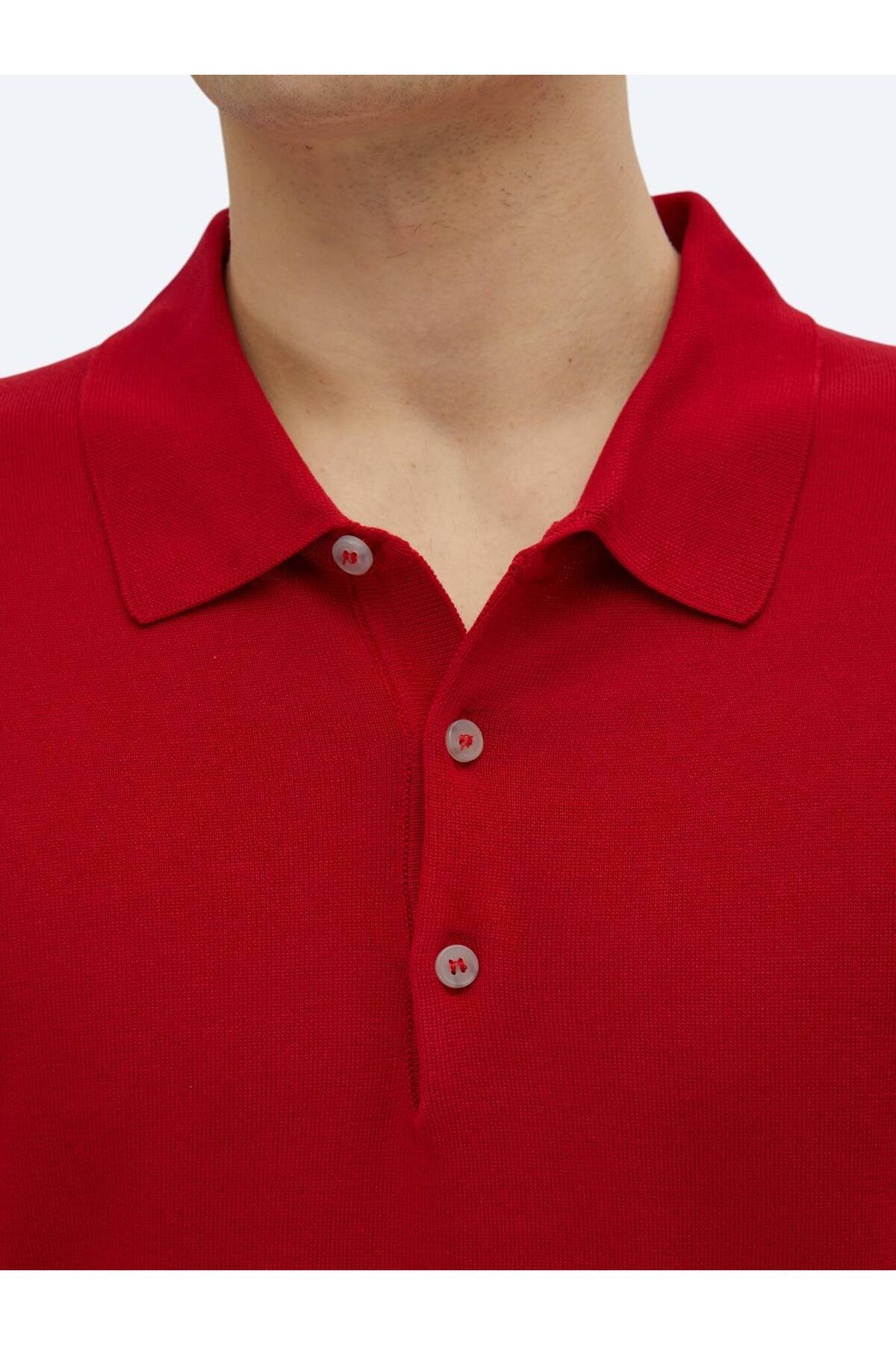 کیپ ژاکت بافتنی ساده یقه پولو قرمز