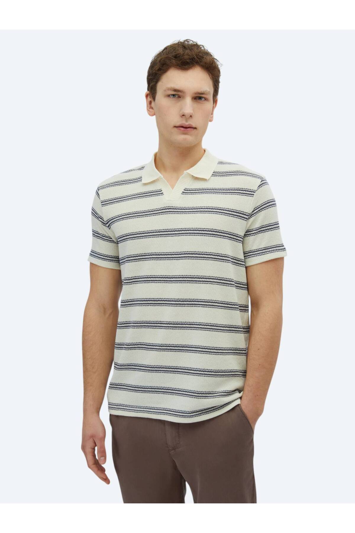 کیپ تیشرت یقه پولو راه راه سرمهای طرح ترکیبی پنبه