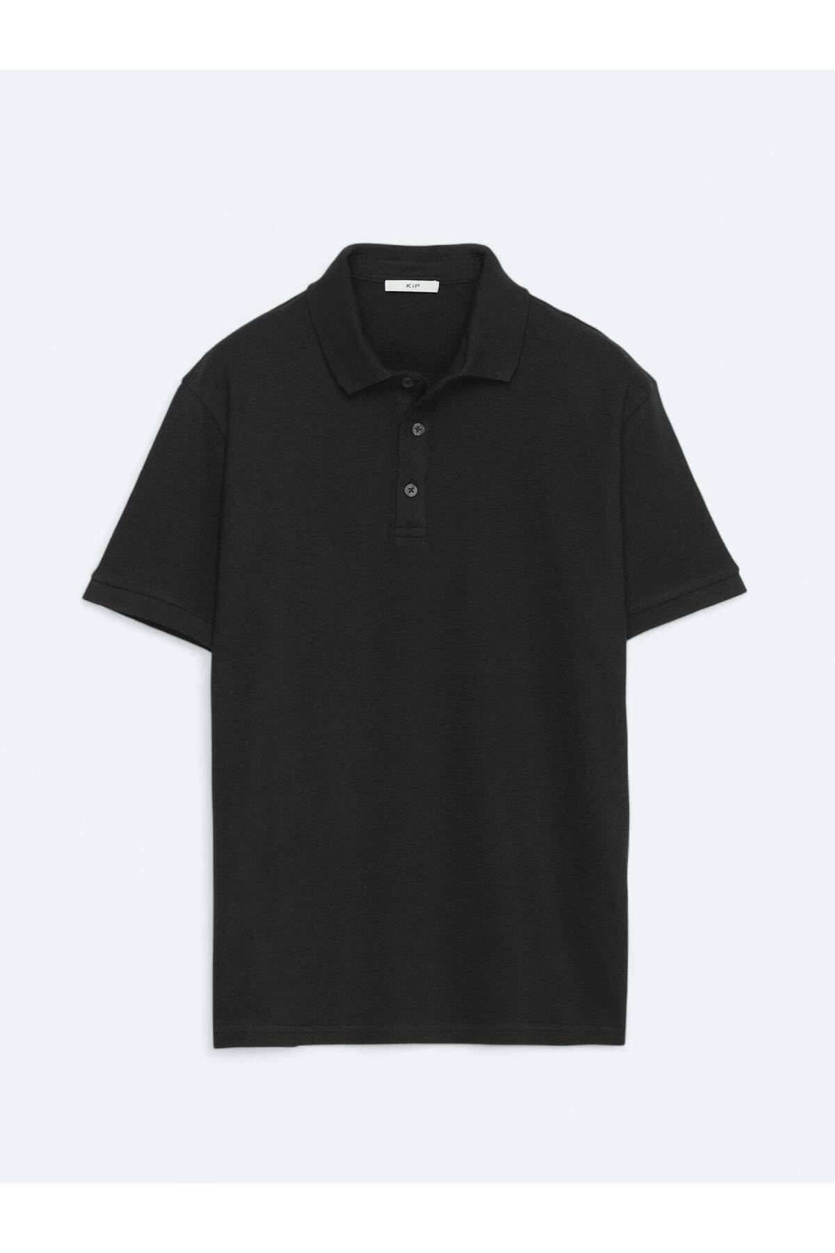 کیپ تیشرت یقه پولو مشکی ساده ۱۰۰٪ پنبهای