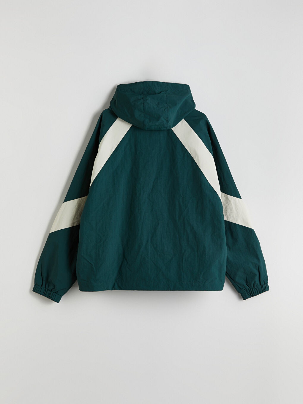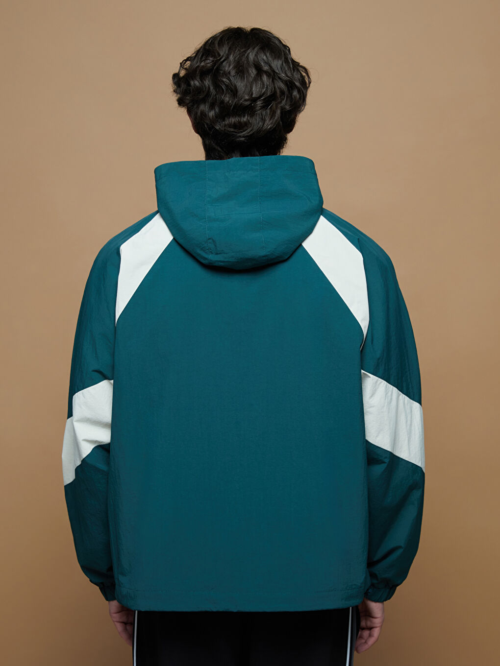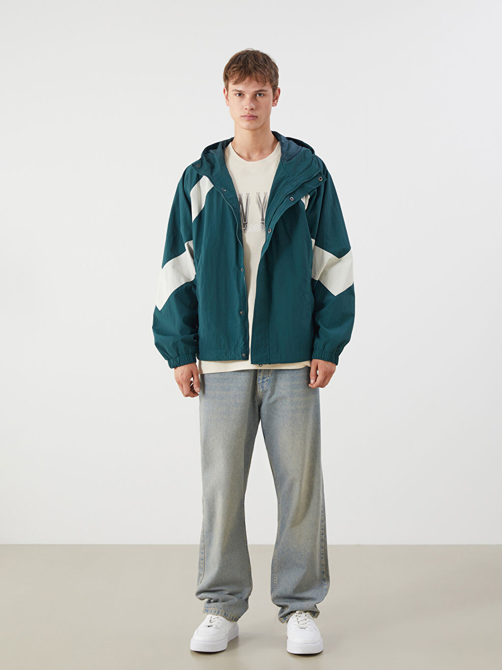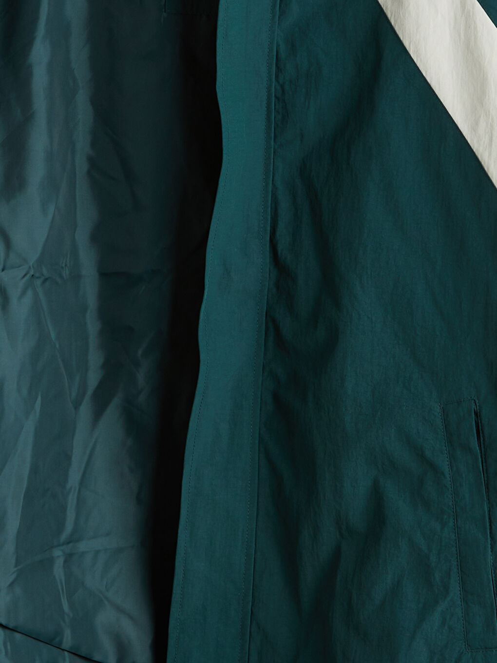 بارانی مردانهی کلاهدار و آستینبلند. طراحی رنگی. جلو زیپدار، سر آستینها کشسان و جیبهای کناری.