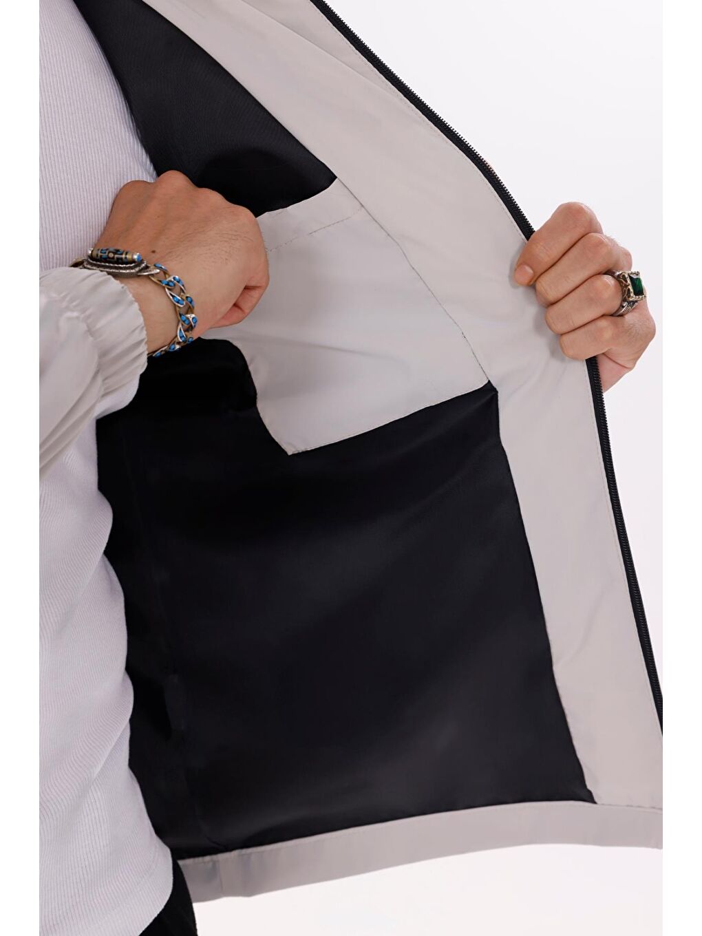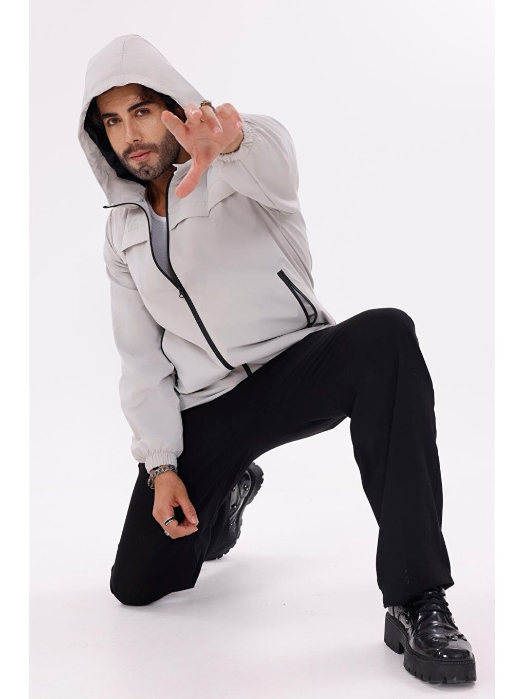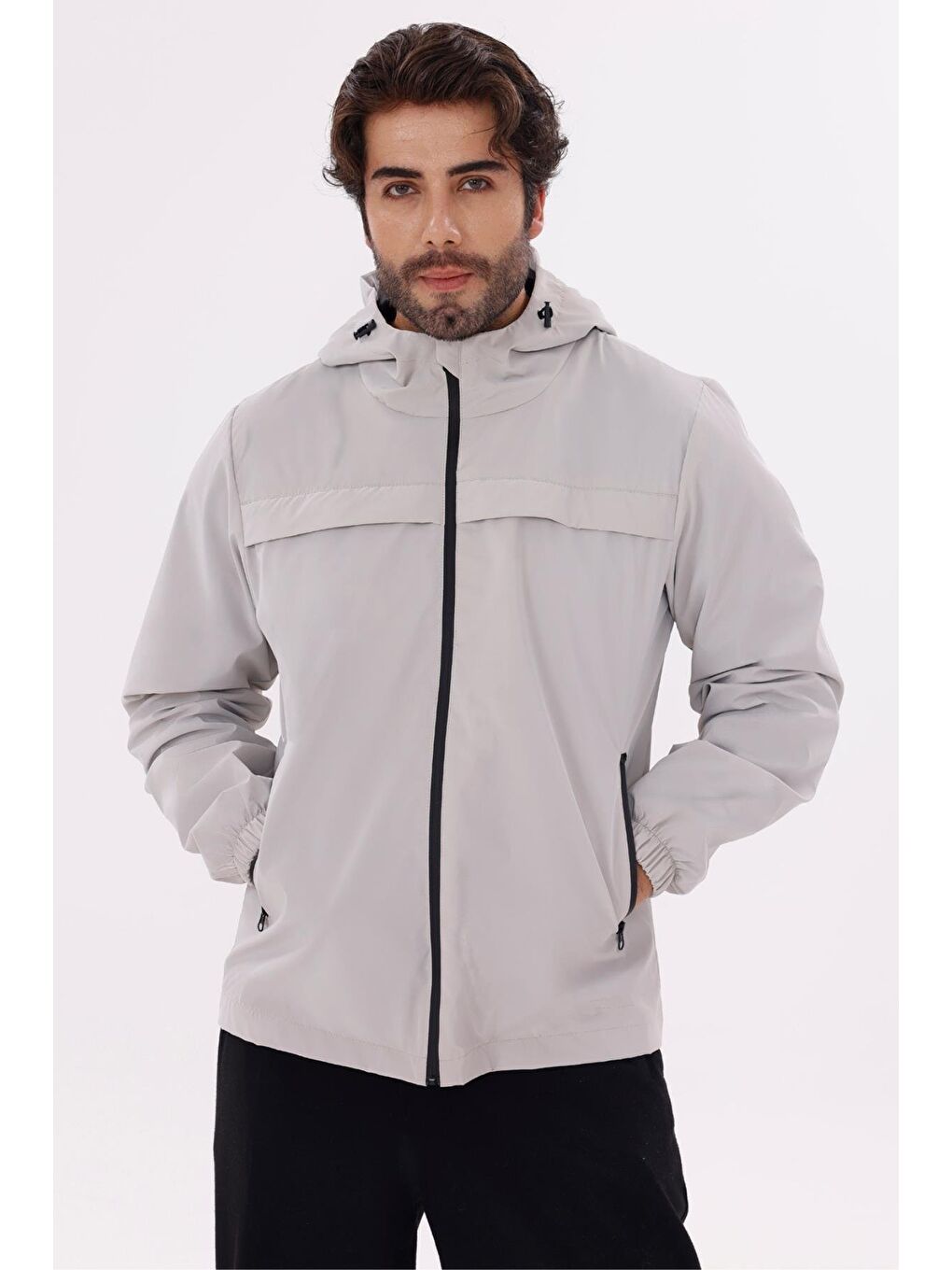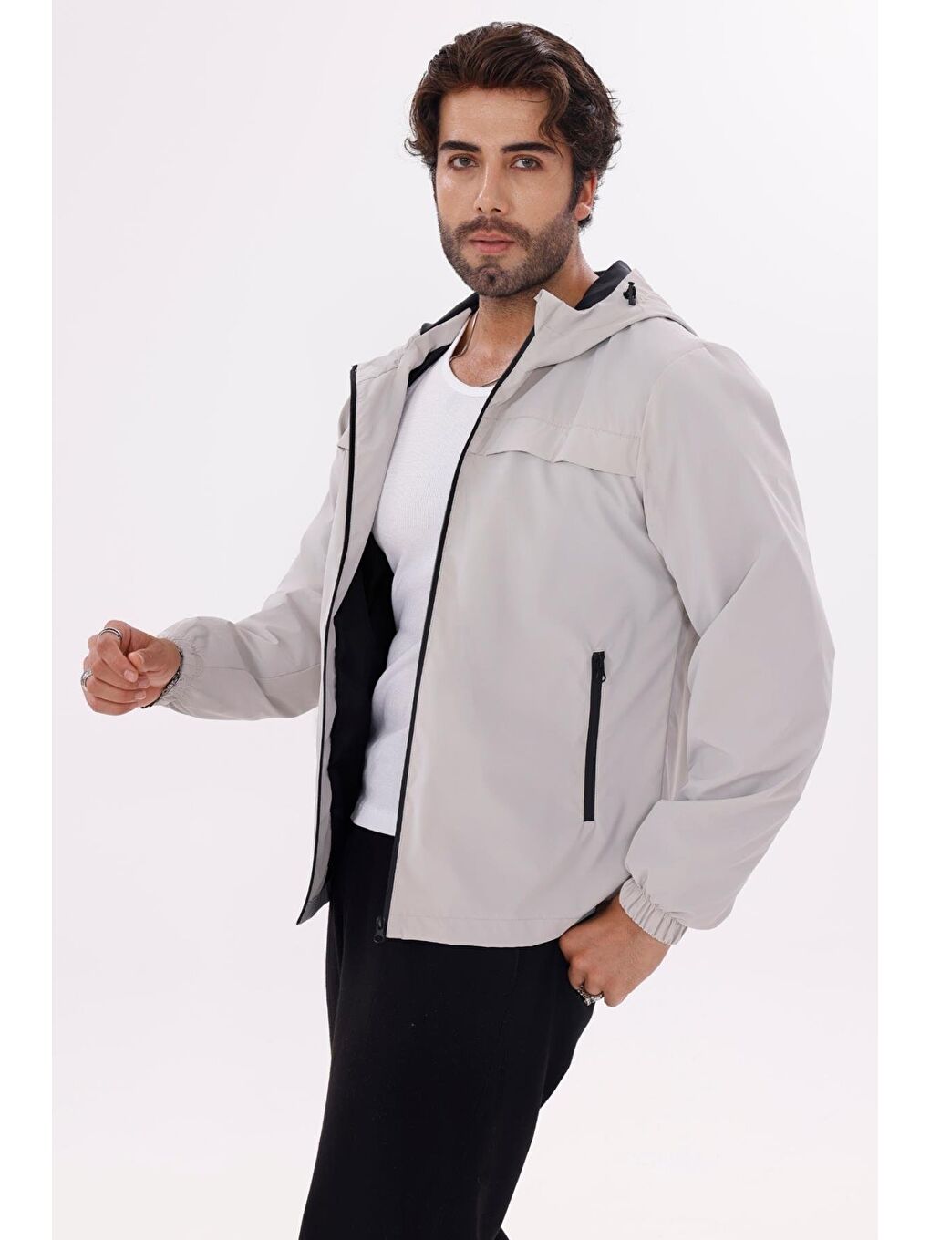بارانی مردانه کلاهدار بژ از جنس پارچه نوا، سبک و بادوام، مناسب برای فصول سرد، ضد آب و باد