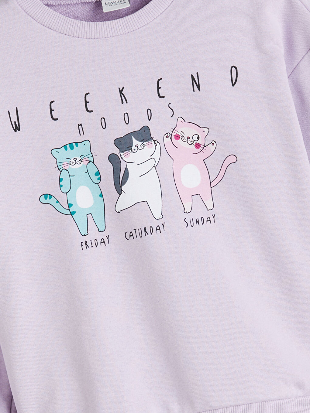 ست لباس خواب دخترانه طرح دار از پارچه سه نخ دوخته شده است. تاپ لباس خواب یقه گرد و آستین بلند است. پایین لباس خواب دارای کمر کشی است.