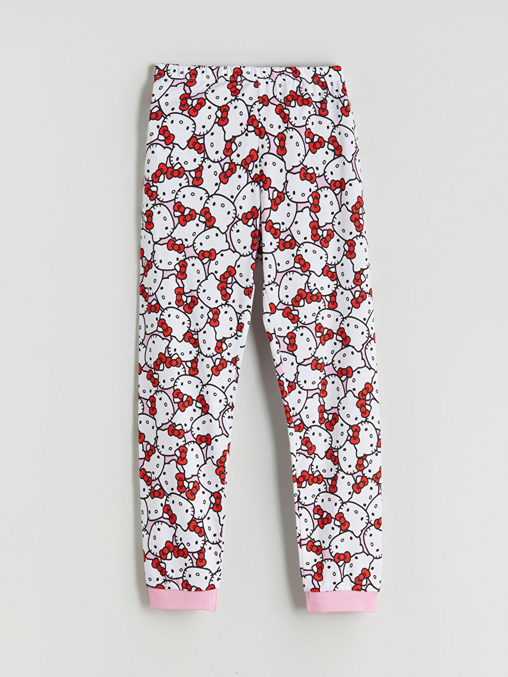 ست لباس خواب دخترانه دارای مجوز Hello Kitty شامل یقه گرد، تاپ آستین بلند و پایین تنه طرح دار با لبه های راه راه است. ساخته شده از 100% پنبه شانه شده.