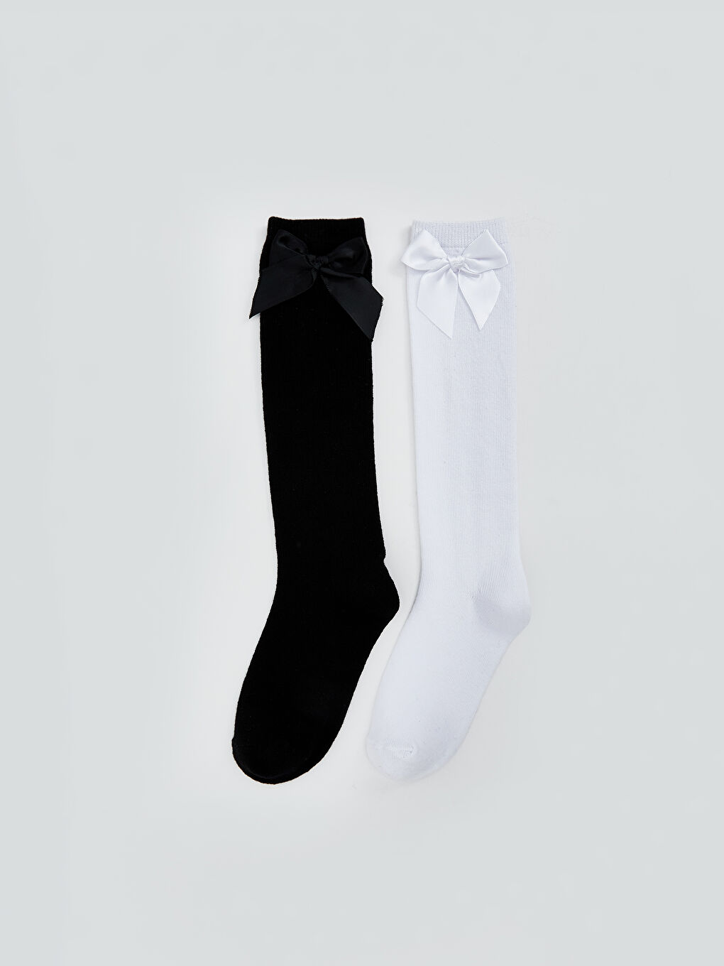 این جورابهای دخترانه که در بستههای دو عددی تا زانو قرار دارند، از پارچه ترکیبی پنبهای انعطافپذیر ساخته شدهاند و دارای طرح پاپیون روبانی هستند.