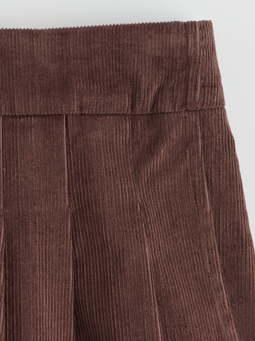 دامن کوتاه دخترانه مخمل پلیسه دار کمر کشی قهوه ای