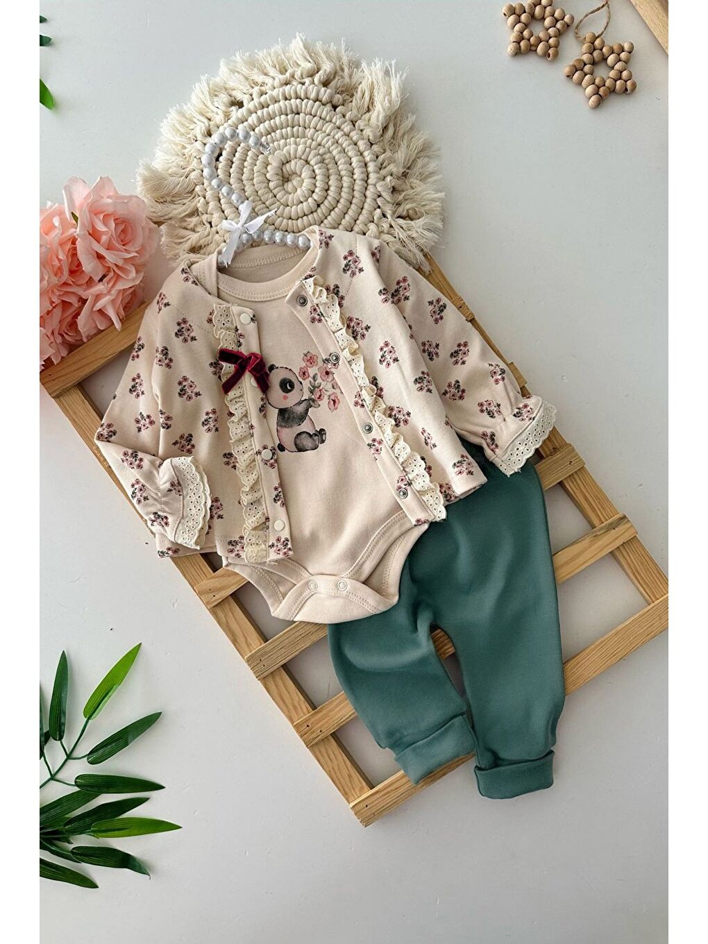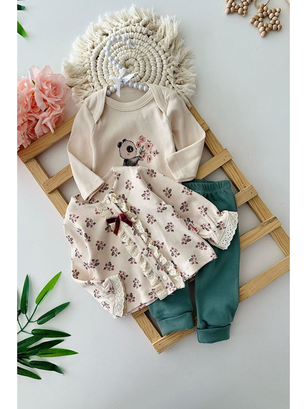 ست دخترانه 3 تکه رفل با طرح گل 100% نخی سبز