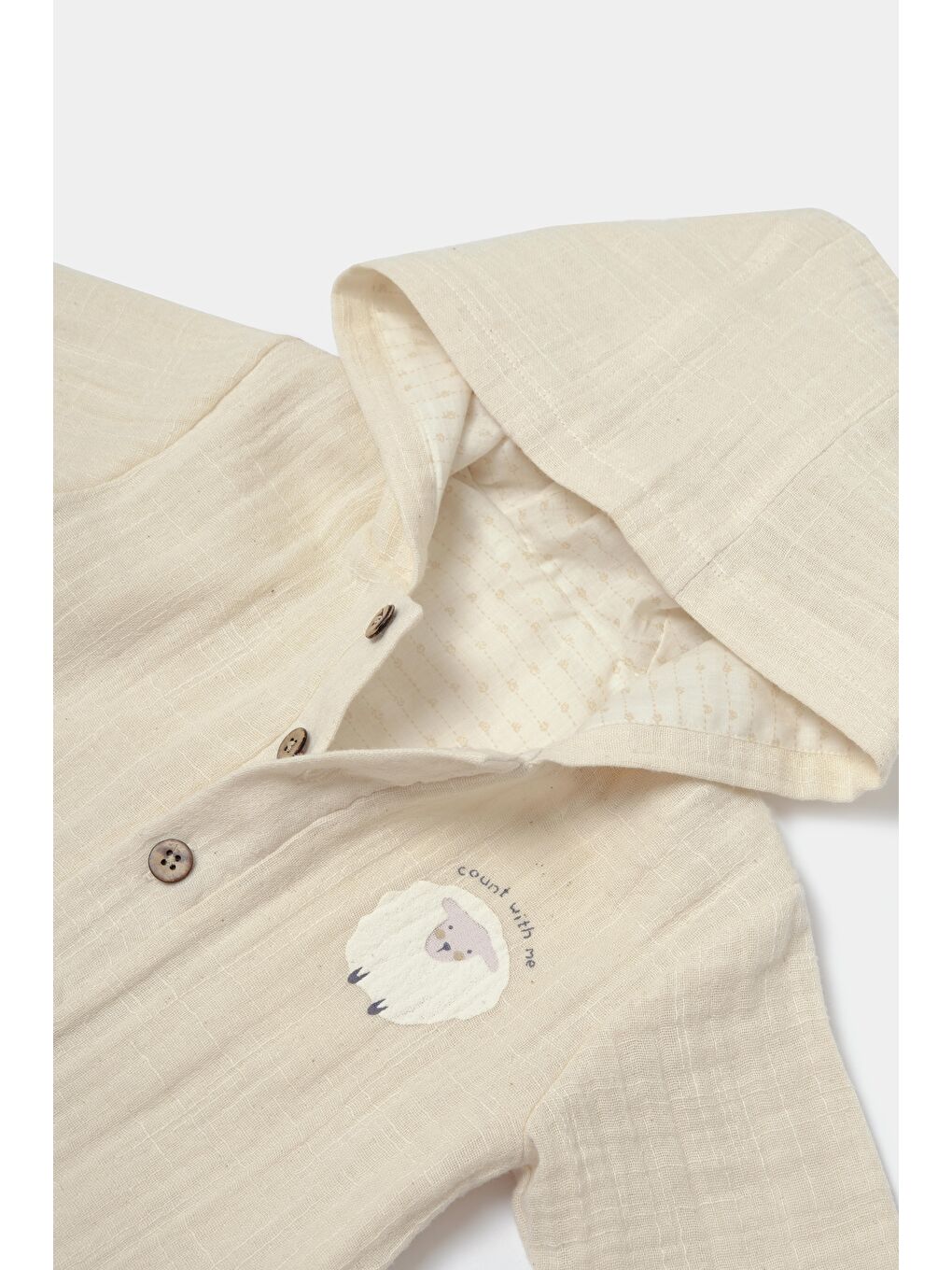 ست کت و شلوار یونیسکس ارگانیک پنبه ای اکرو موسلین کلاهدار – جزئیات گلدوزی گوسفندی