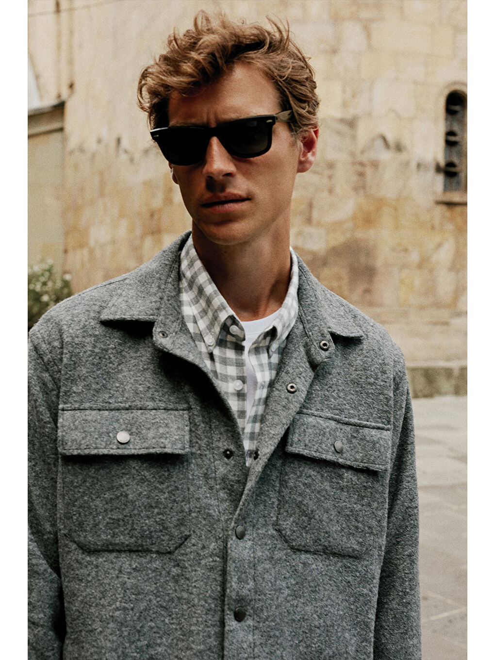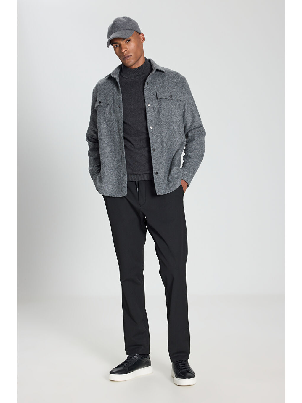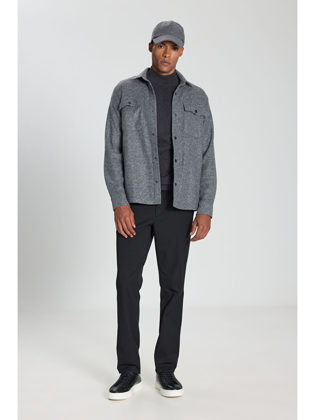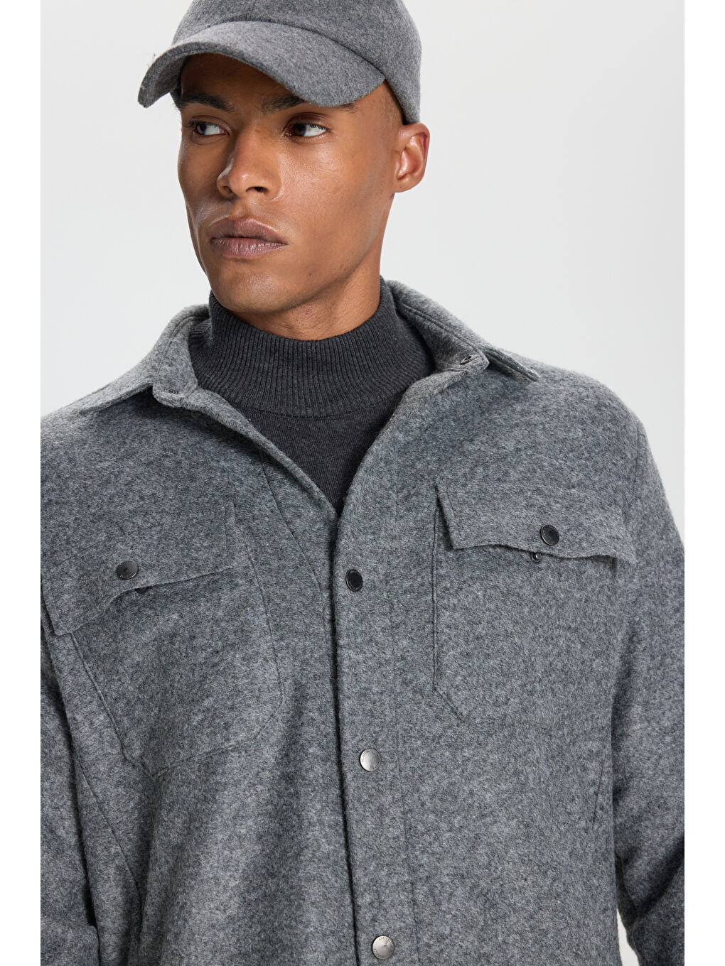 ژاکت پیراهن مردانه پشمی خاکستری گرم و راحت، یقه کلاسیک برش آرام