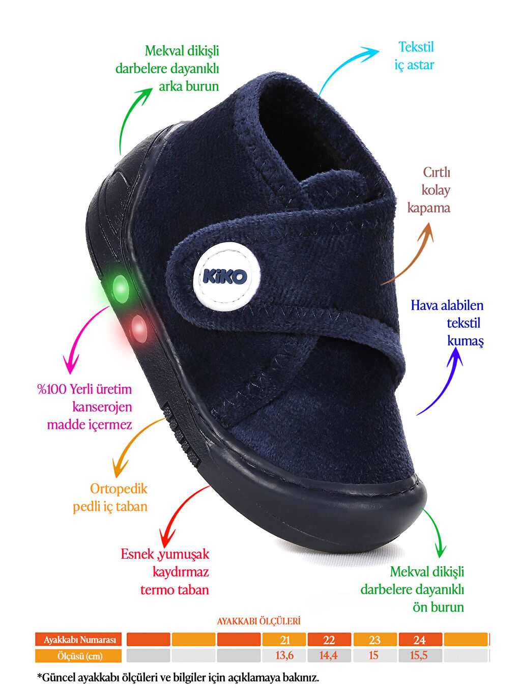 جنس بیرونی: نساجی Nubuck جنس داخلی: نساجی جنس زیره: لاستیک – ترموپلاستیک نوع چفت و بست: نواری – نوار چسب اطلاعات طول: کاملاً با اندازه های استاندارد پا قالب گیری شده است ارتفاع پاشنه: 1.5 سانتی متر ارتفاع زیره: 1 سانتی متر وزن هر جفت 240 گرم اندازه گیری طول کفش داخلی 21: 13.6 سانتی متر 22: 14.4 سانتی متر 23: 15 سانتی متر 24: 15.5 سانتی متر