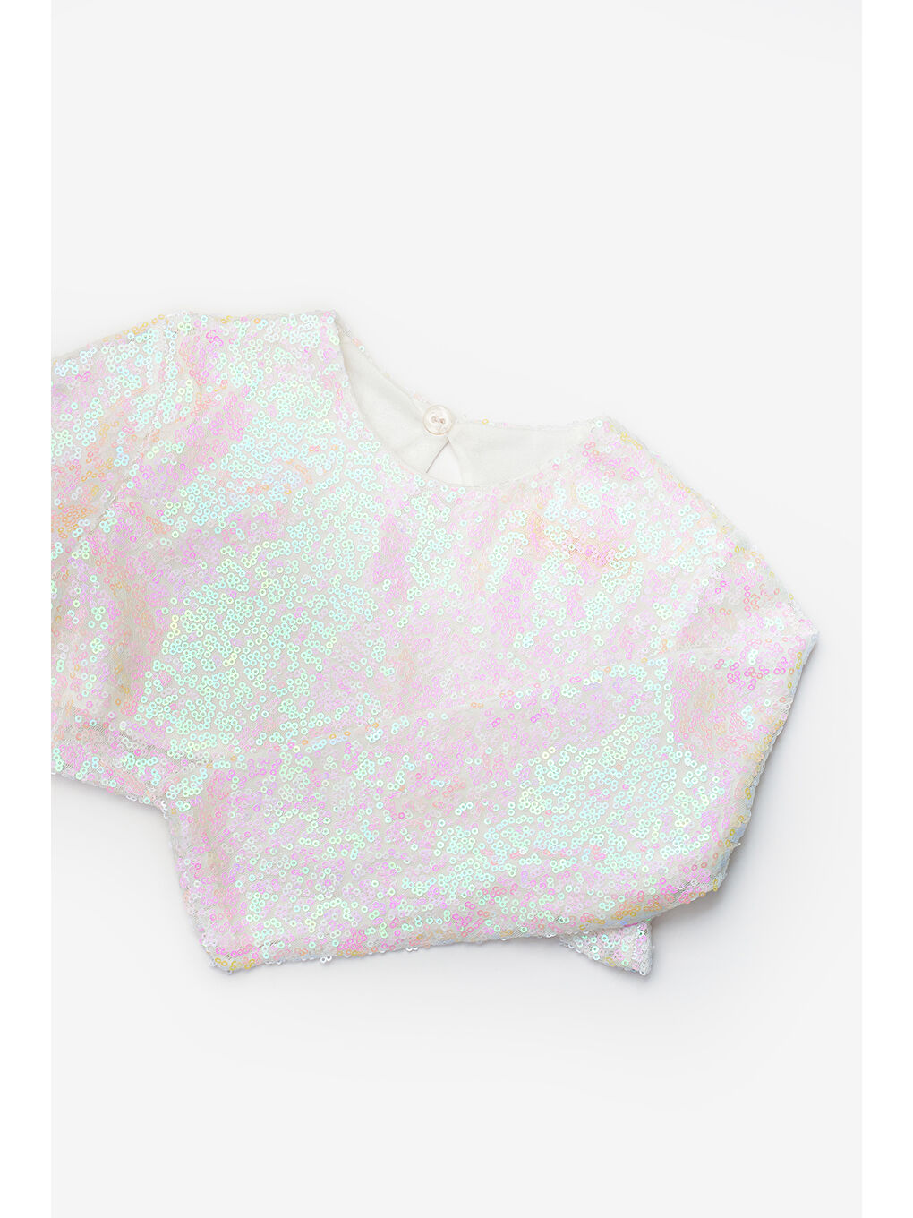 این تاپ کوتاه جذاب، ستاره مهمانیها و مناسبتهای خاص پرنسسهای کوچک شما خواهد بود. این تاپ که از سر تا پا با پولکهای براق پوشیده شده، ظاهری شاد ارائه میدهد که به طور کامل انرژی و درخشش کودکان را تکمیل میکند. برش کوتاه آن، آن را به انتخابی عالی برای ست کردن با دامن یا شلوار فاق بلند تبدیل میکند. این تاپ که از ۱۰۰٪ پلیاستر ساخته شده و آستر دارد، انتخابی عالی برای مناسبتهای خاص مانند جشن تولد، جشن شب سال نو یا اجراهای روی صحنه است.