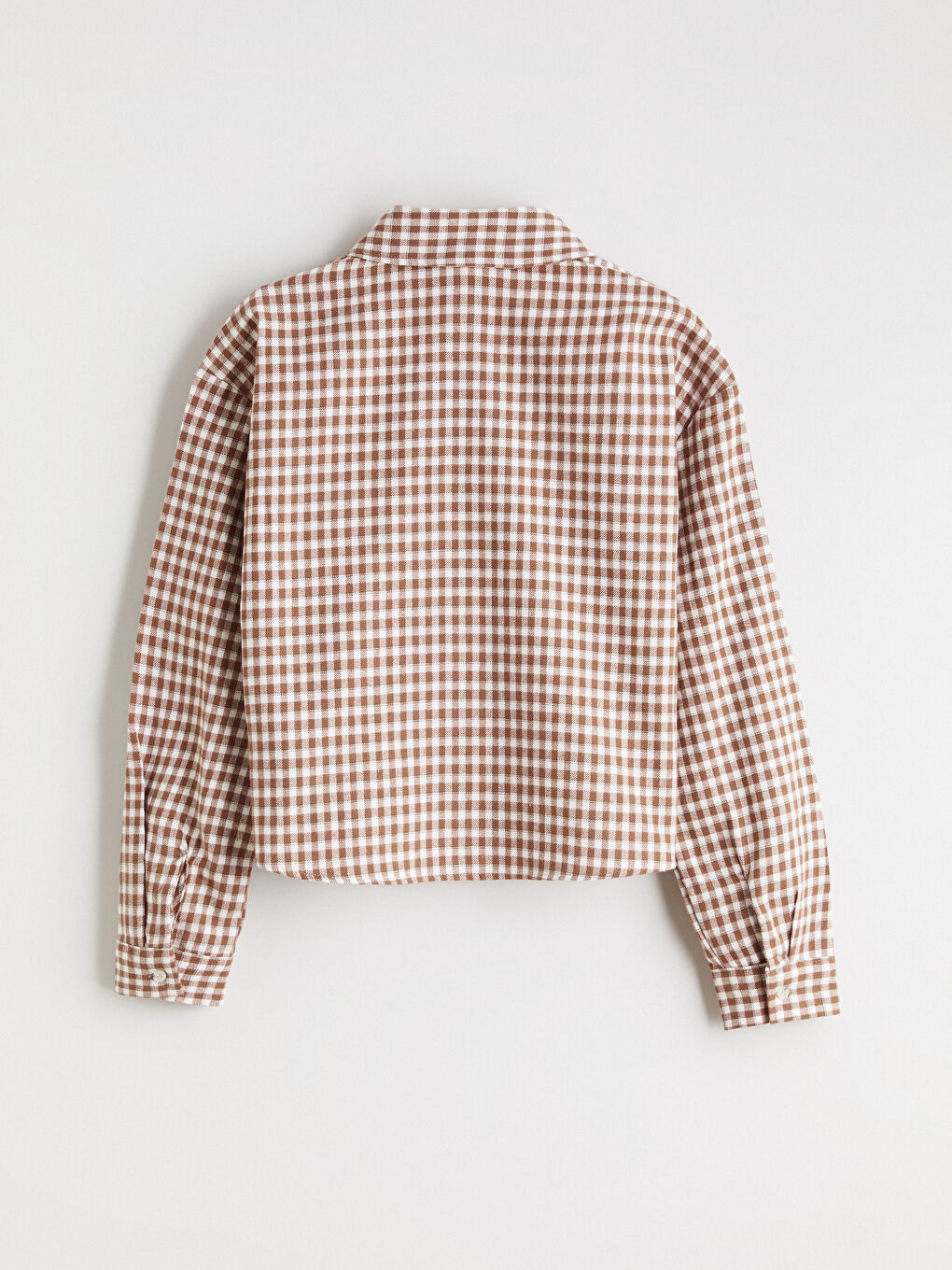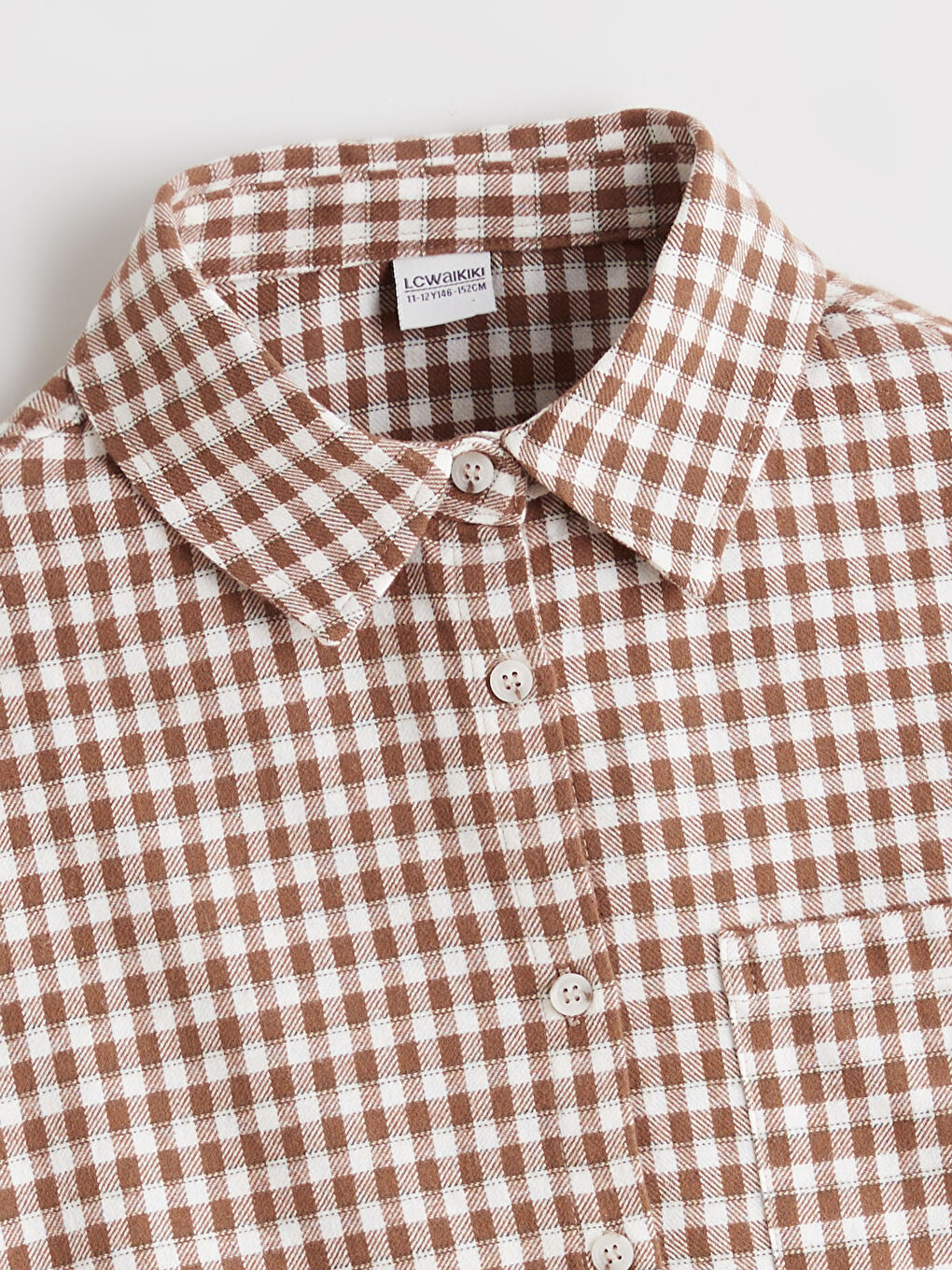 پیراهن آستین بلند از جنس نخ پنبه با طرح چهارخانه.
