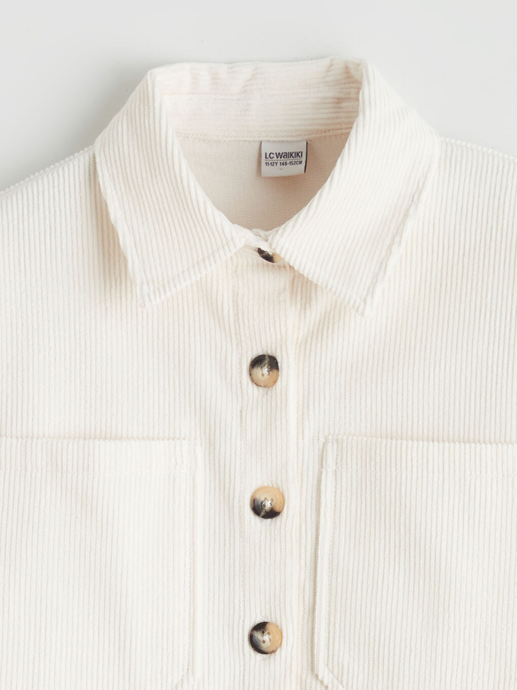 این پیراهن دخترانه آستین بلند، از جنس مخمل ۱۰۰٪ پنبه ساخته شده و دارای دکمه در جلو و دو جیب در قسمت سینه است.
