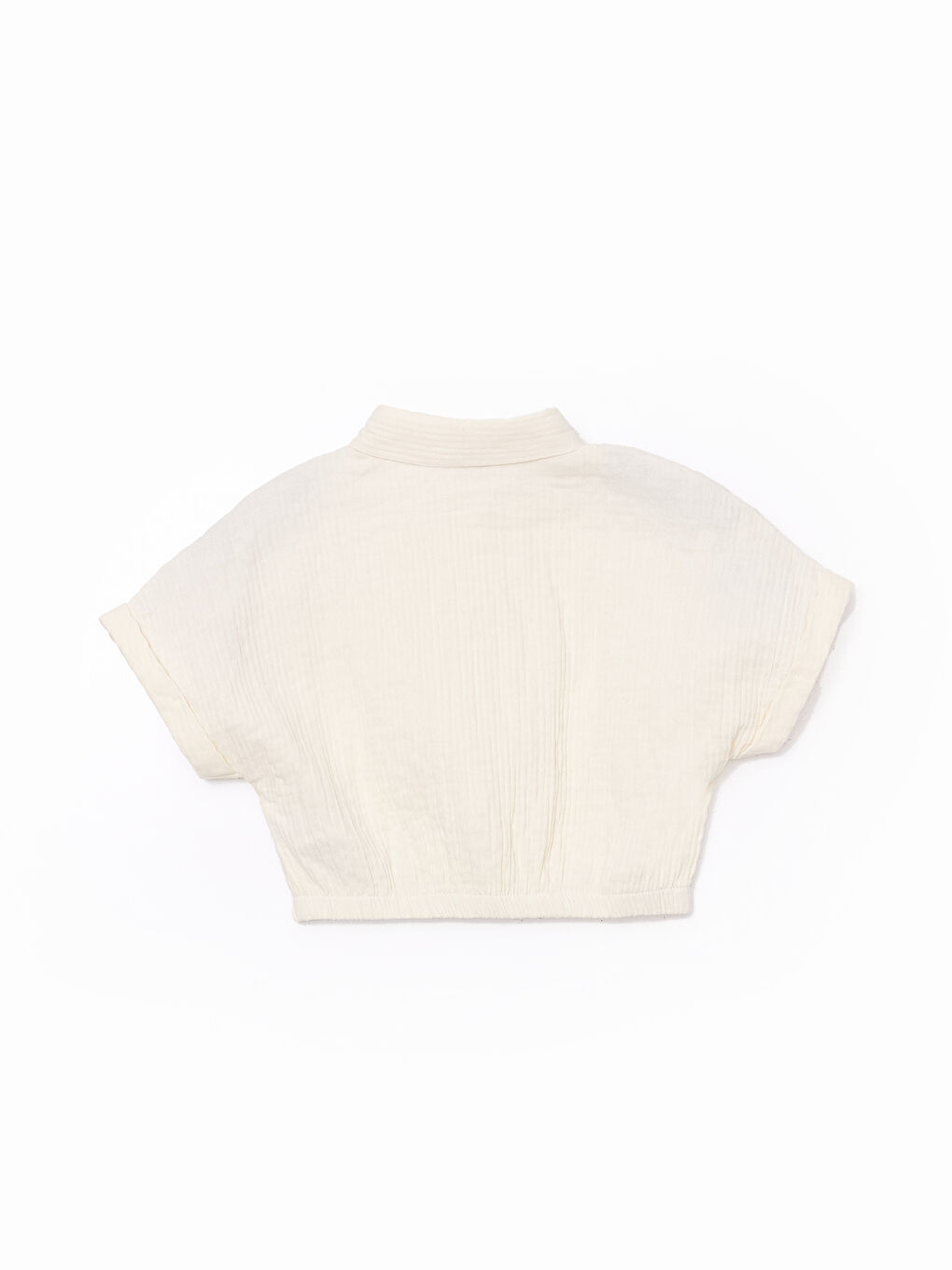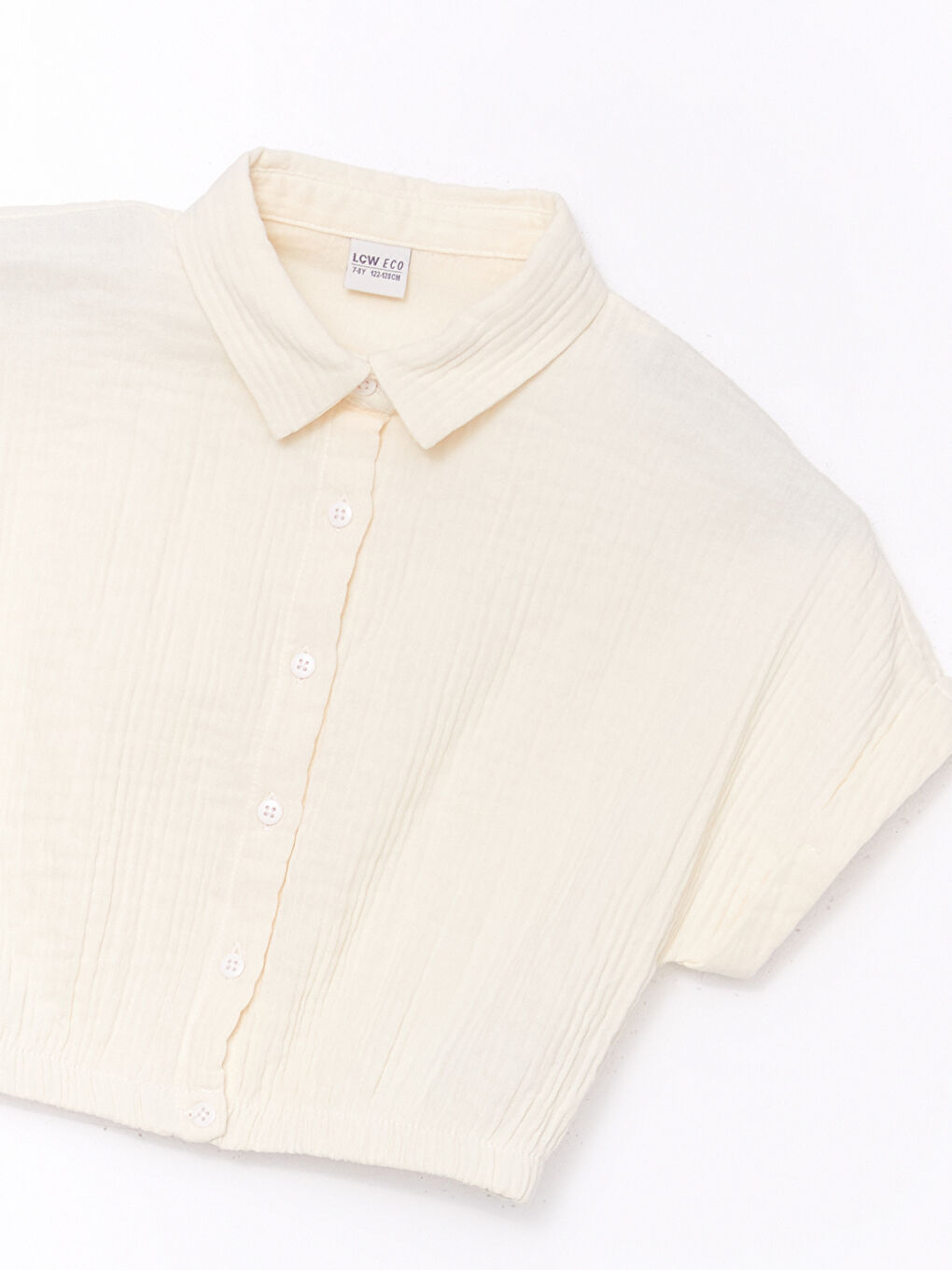 این پیراهن دخترانه آستین کوتاه و یقه پیراهن از پارچه نخی مرغوب ساخته شده است. دارای یک جلو دکمه دار و یک سجاف الاستیک است.