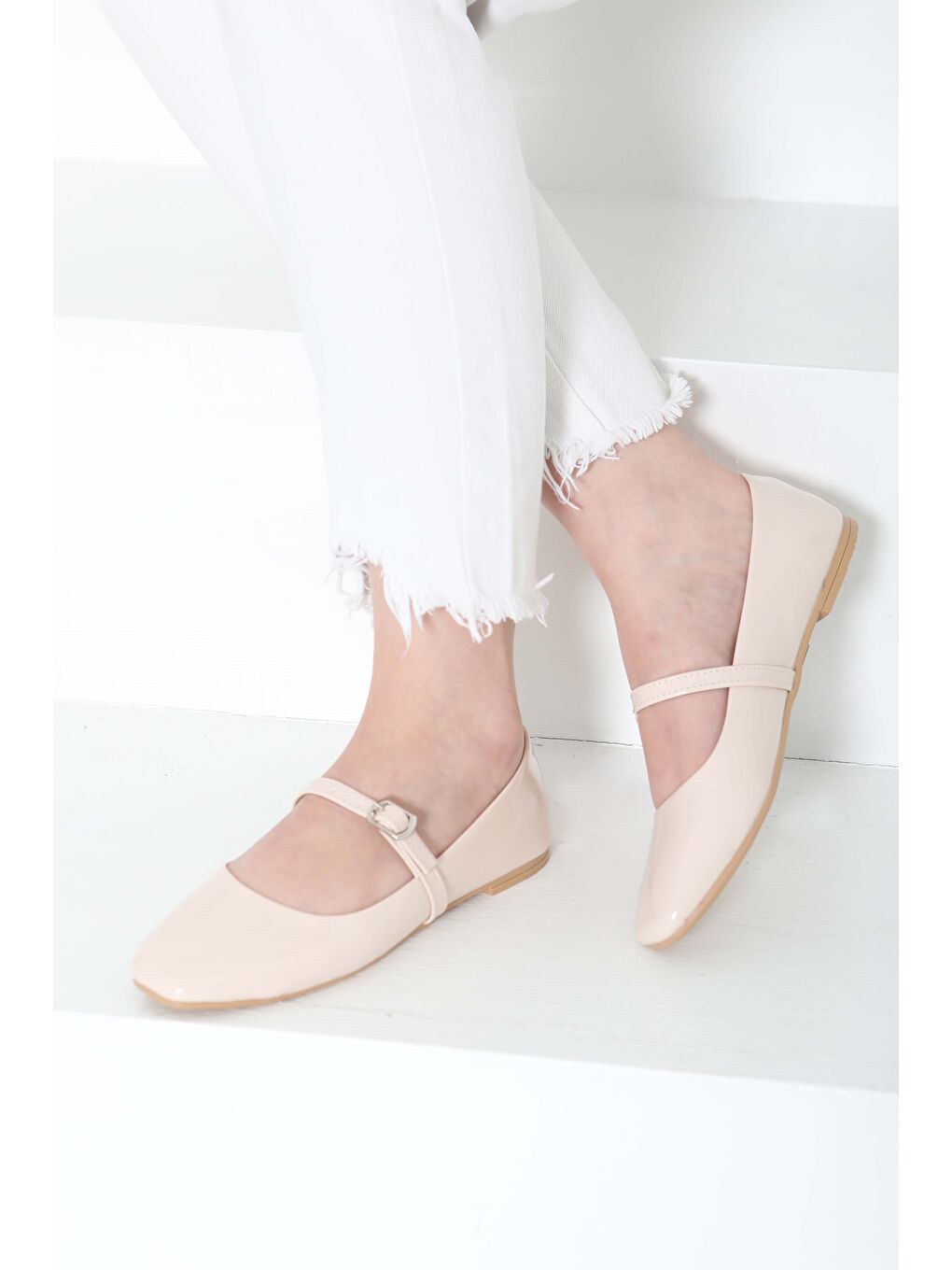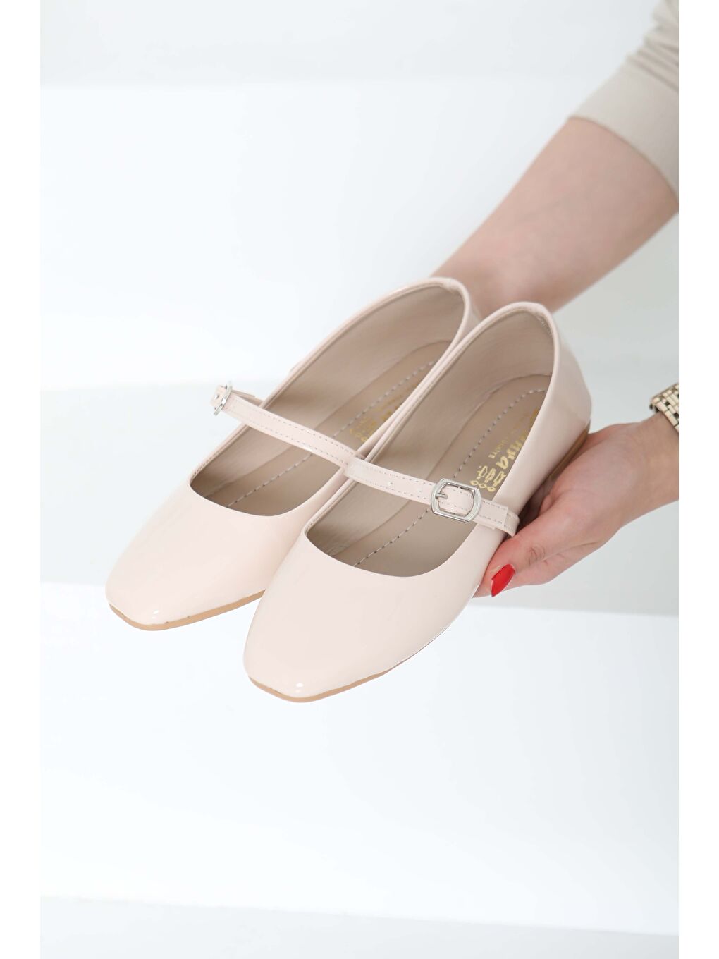 کفش‌های چرمی ورنی زنانه کرم رنگ Ecru – 27155