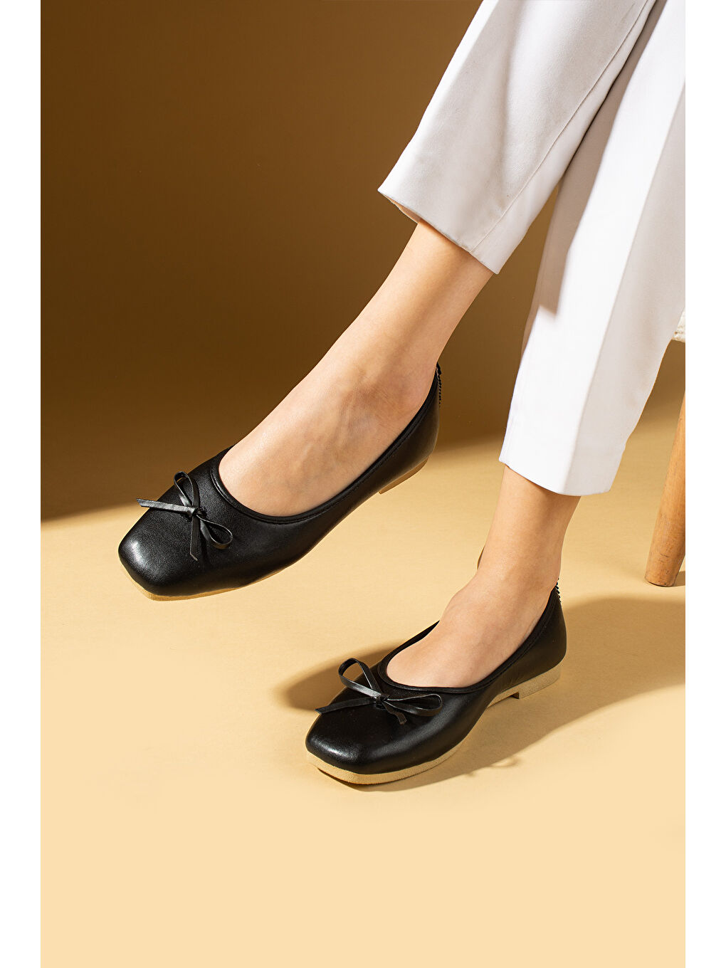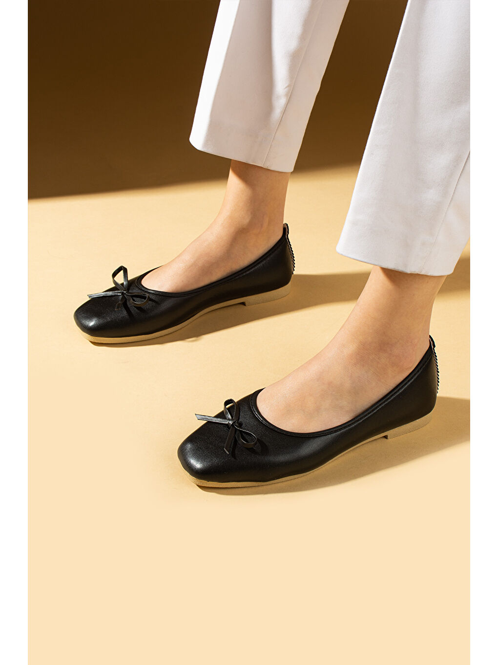 کفش‌های تخت مشکی با طرح پاپیون برای نوک پا، راحت و تخت، سایز ۸۱-۱۴۰-۲۵