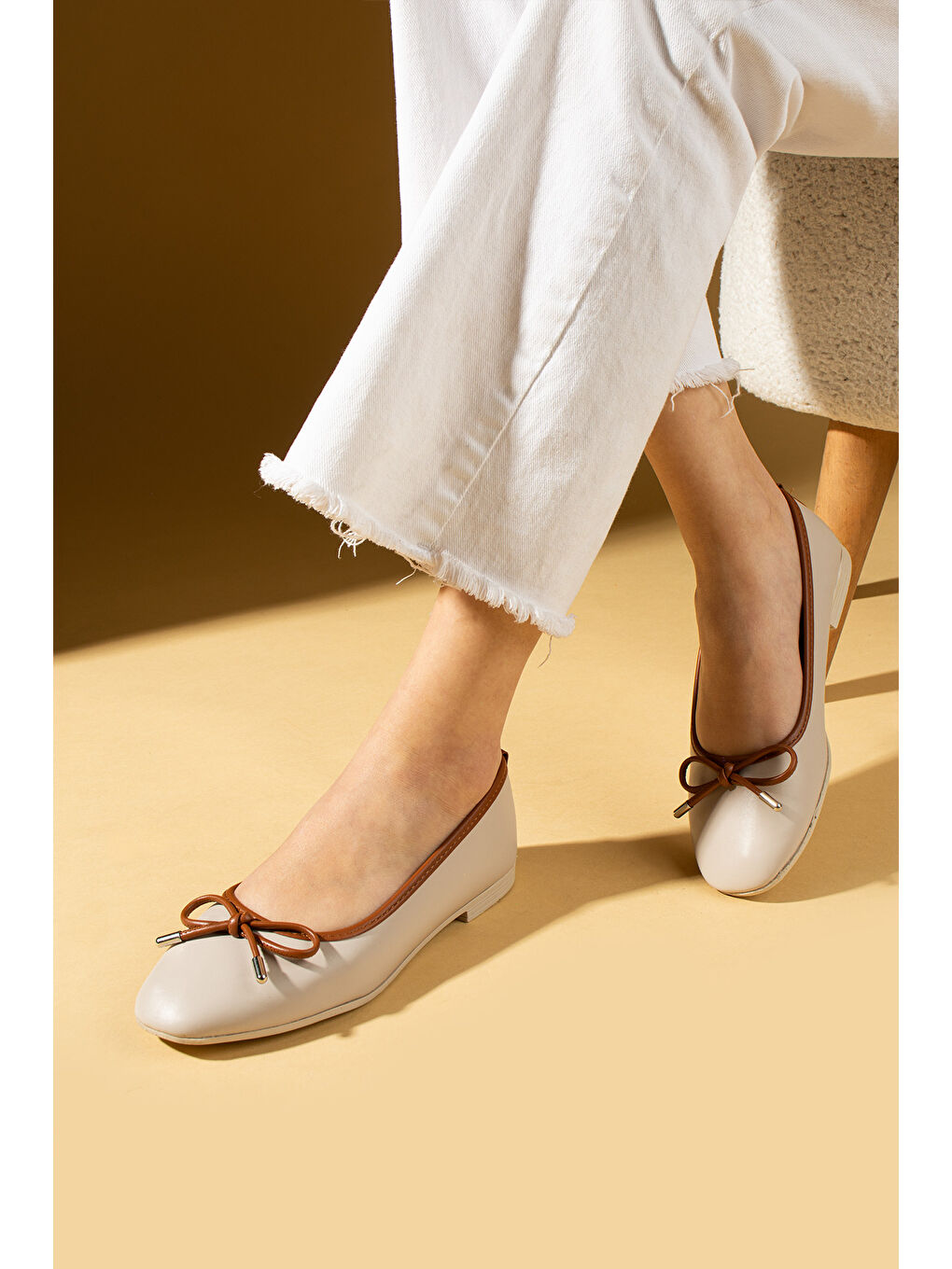 بالرینهای زنانه راحت با جزئیات و پاپیون بژ، سایز ۵۷-۳۴-۲۵ سانت