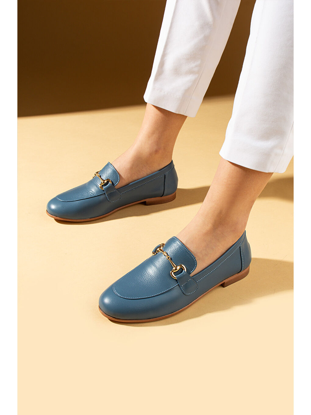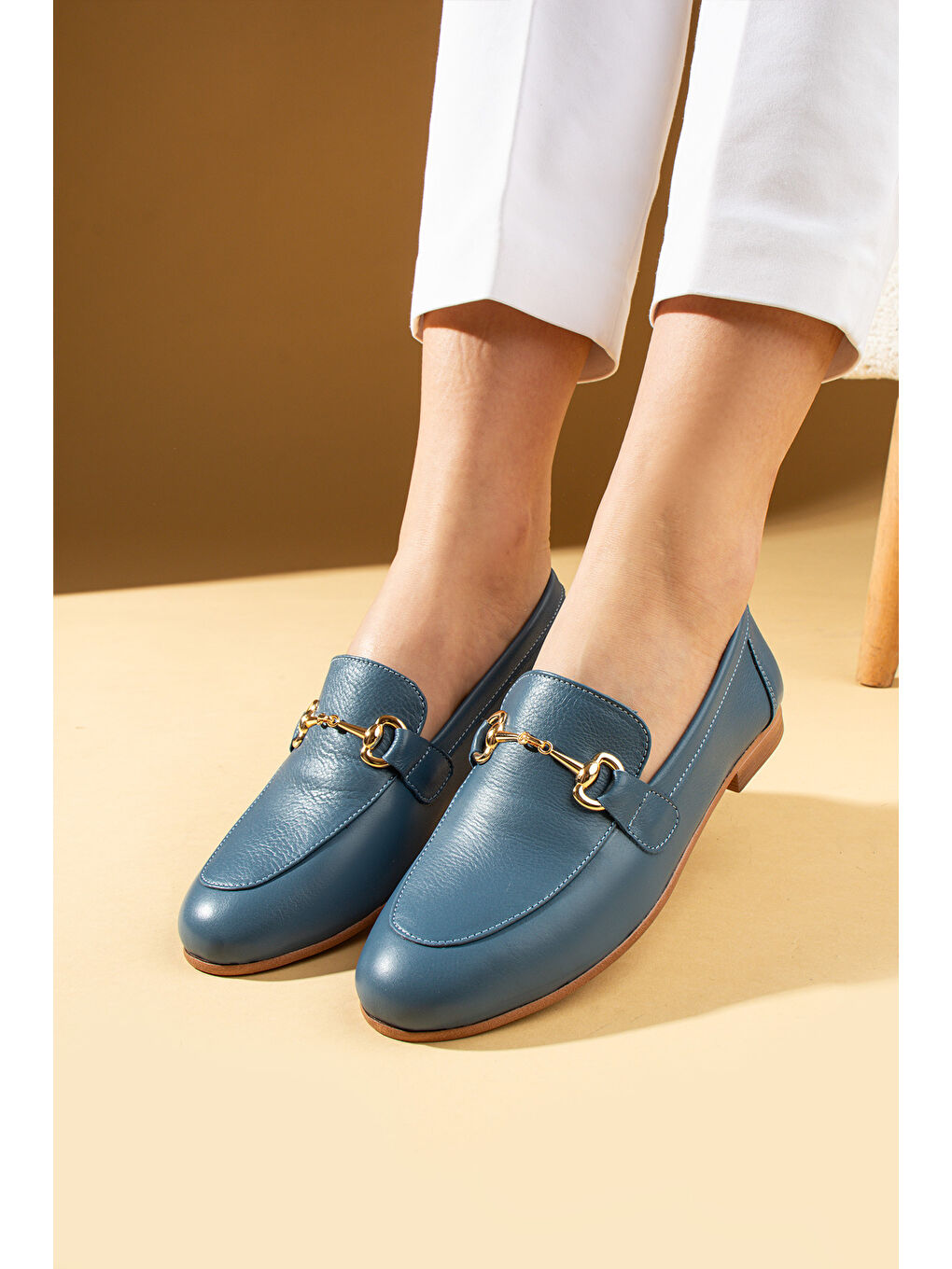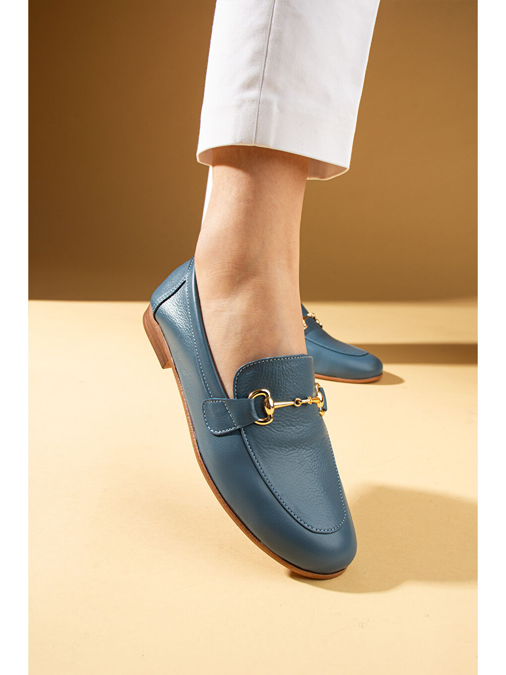 بالرین زنانه راحت و خوش‌دوخت از جنس چرم اصل آبی با سگک طلایی 017-075-25