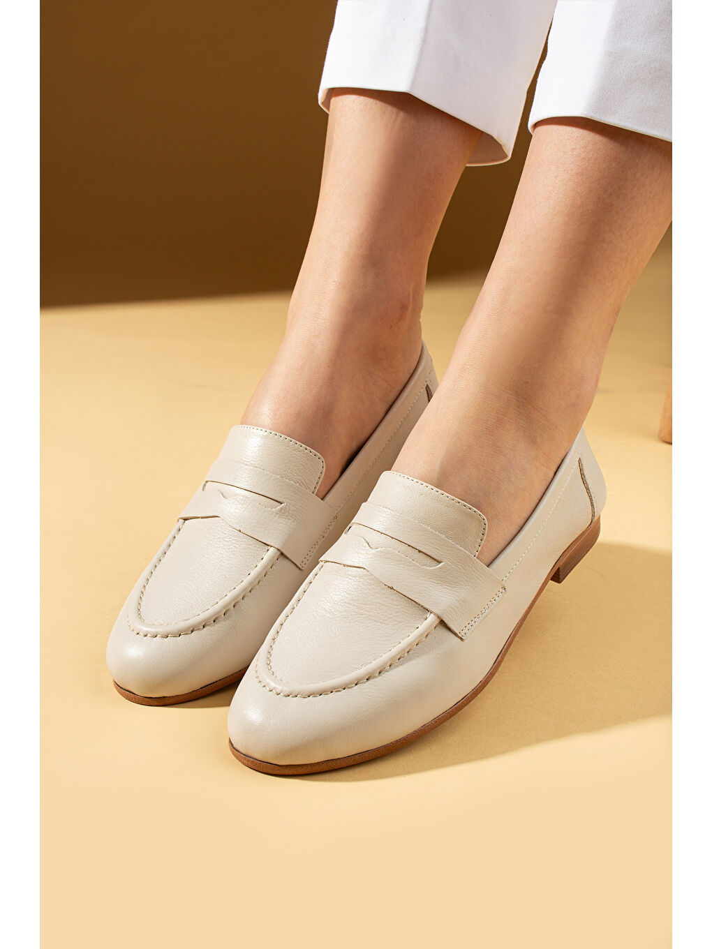 بالرین زنانه راحت و خوش‌دوخت از جنس چرم اصل بژ 017-078-25