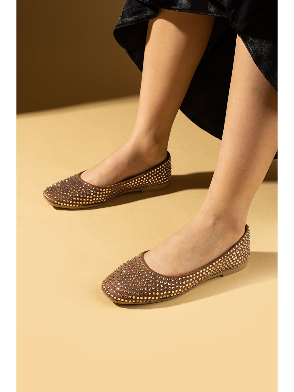 کفشهای راحتی زنانه باله طرح قطره آب قهوهای، مدل ۸۱-۱۶۱-۲۵