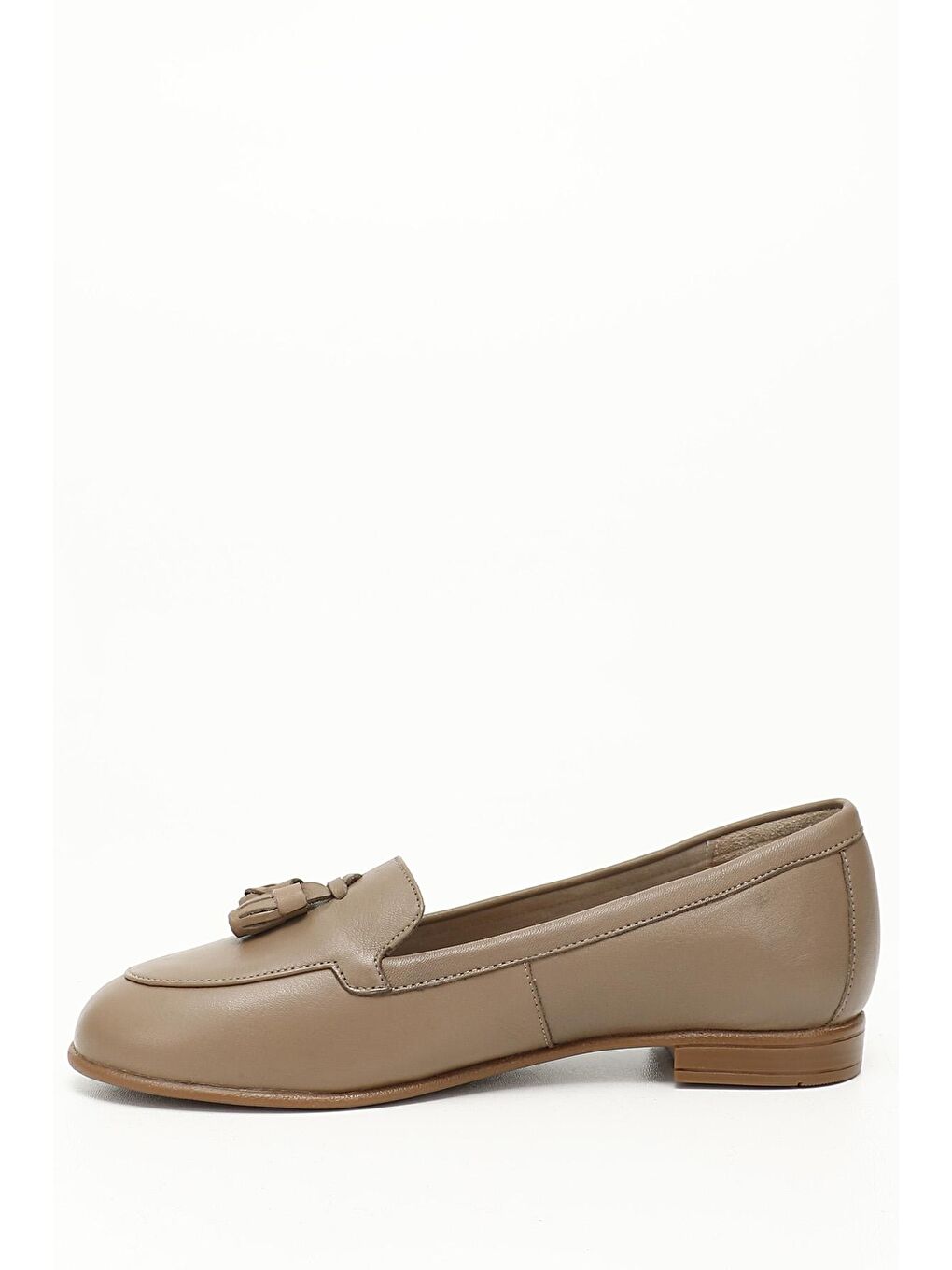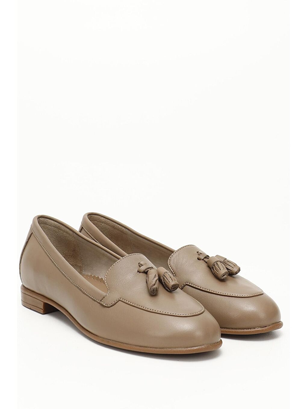 کفشهای بالرین زنانه منگولهدار، چرم اصل بژ، پنجه گرد، زیره تخت، کد ۲۴۲۵۹