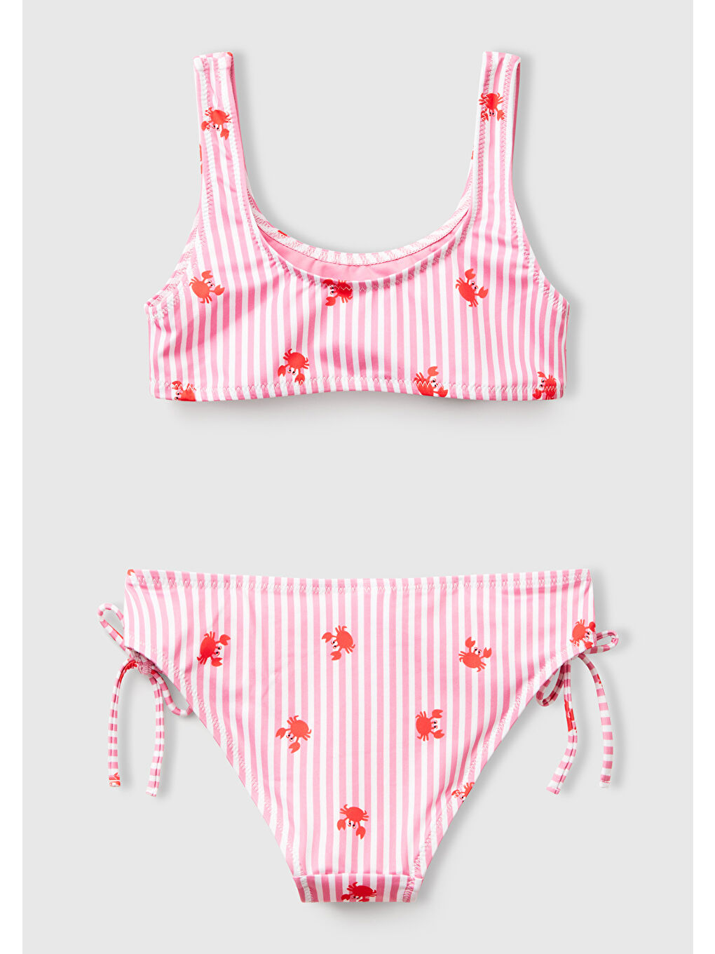 ست بیکینی یقه گرد دخترانه طرح دار صورتی