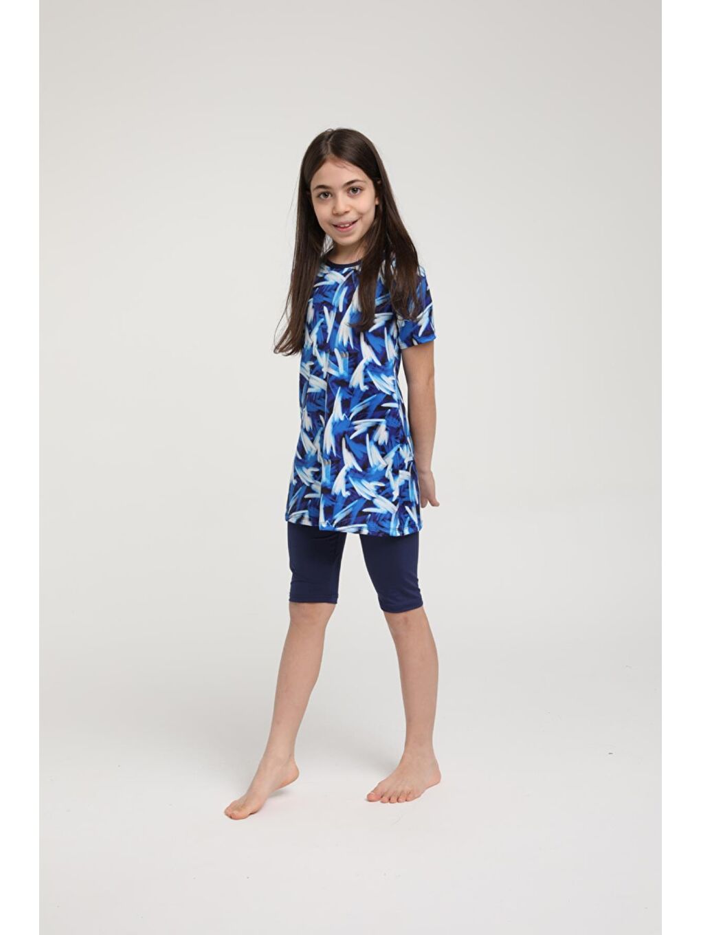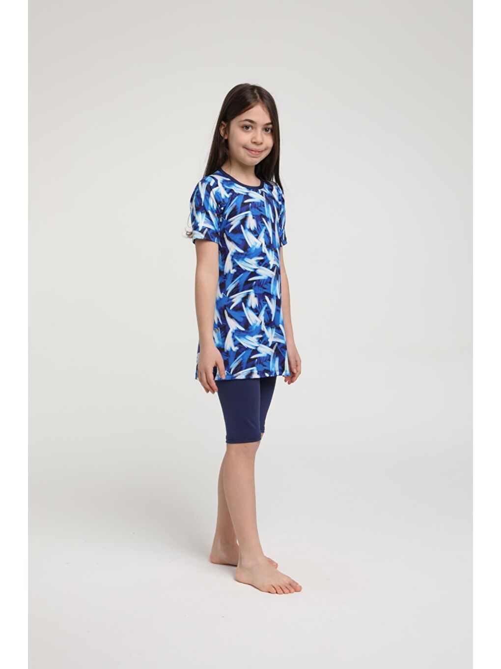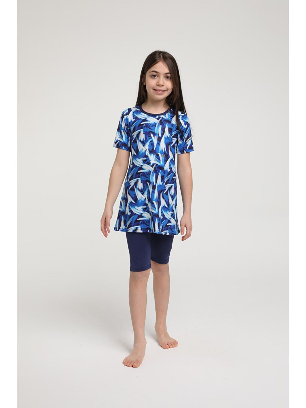 مایو دخترانه جوراب شلواری آستین کوتاه آبی سرمه ای 35105