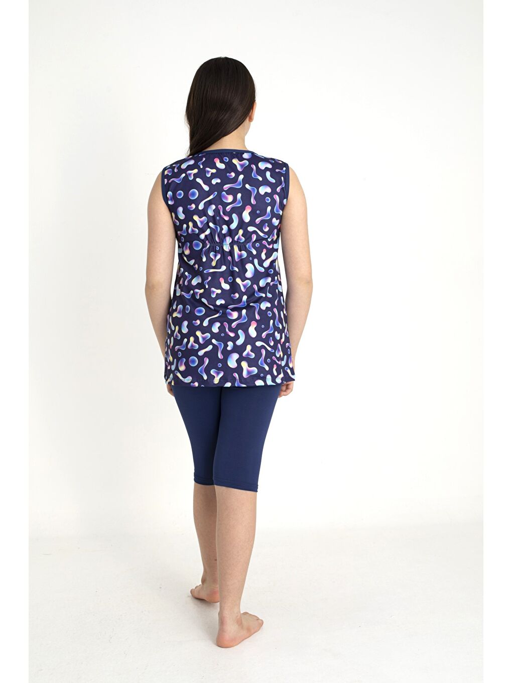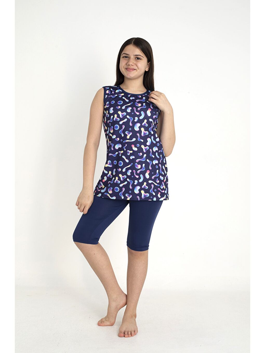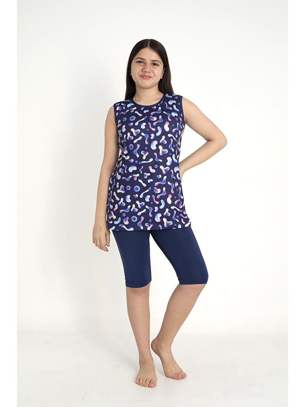 مایو دخترانه جوراب شلواری بدون آستین آبی سرمه ای 3508