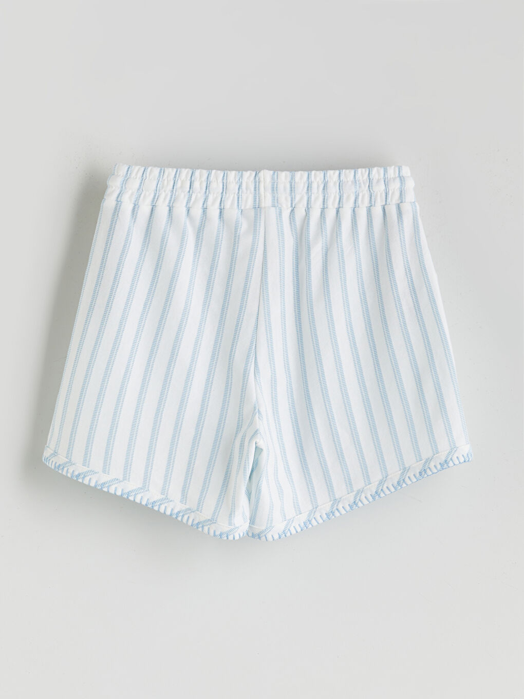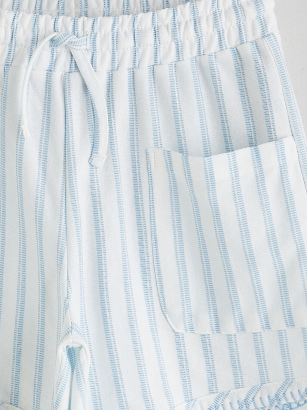 شلوارک راه راه با کمر کشی از پارچه ترکیبی پنبه ساخته شده است. این شلوارک دارای جیب است.