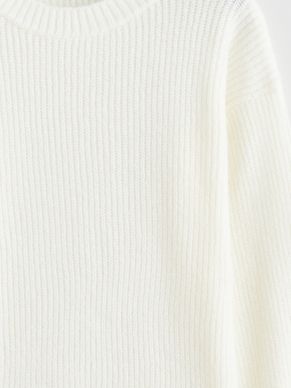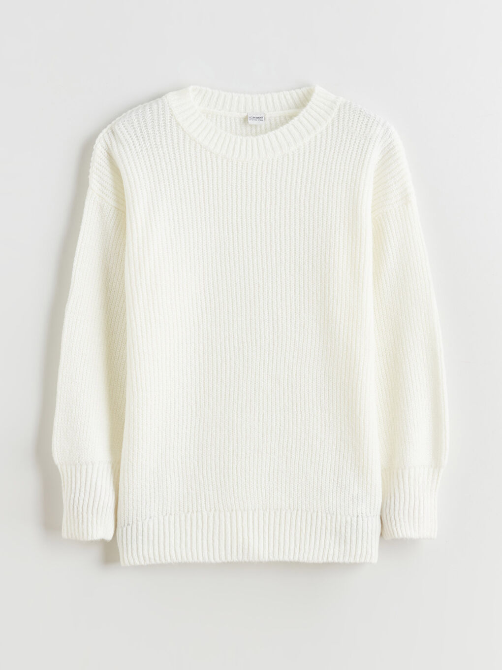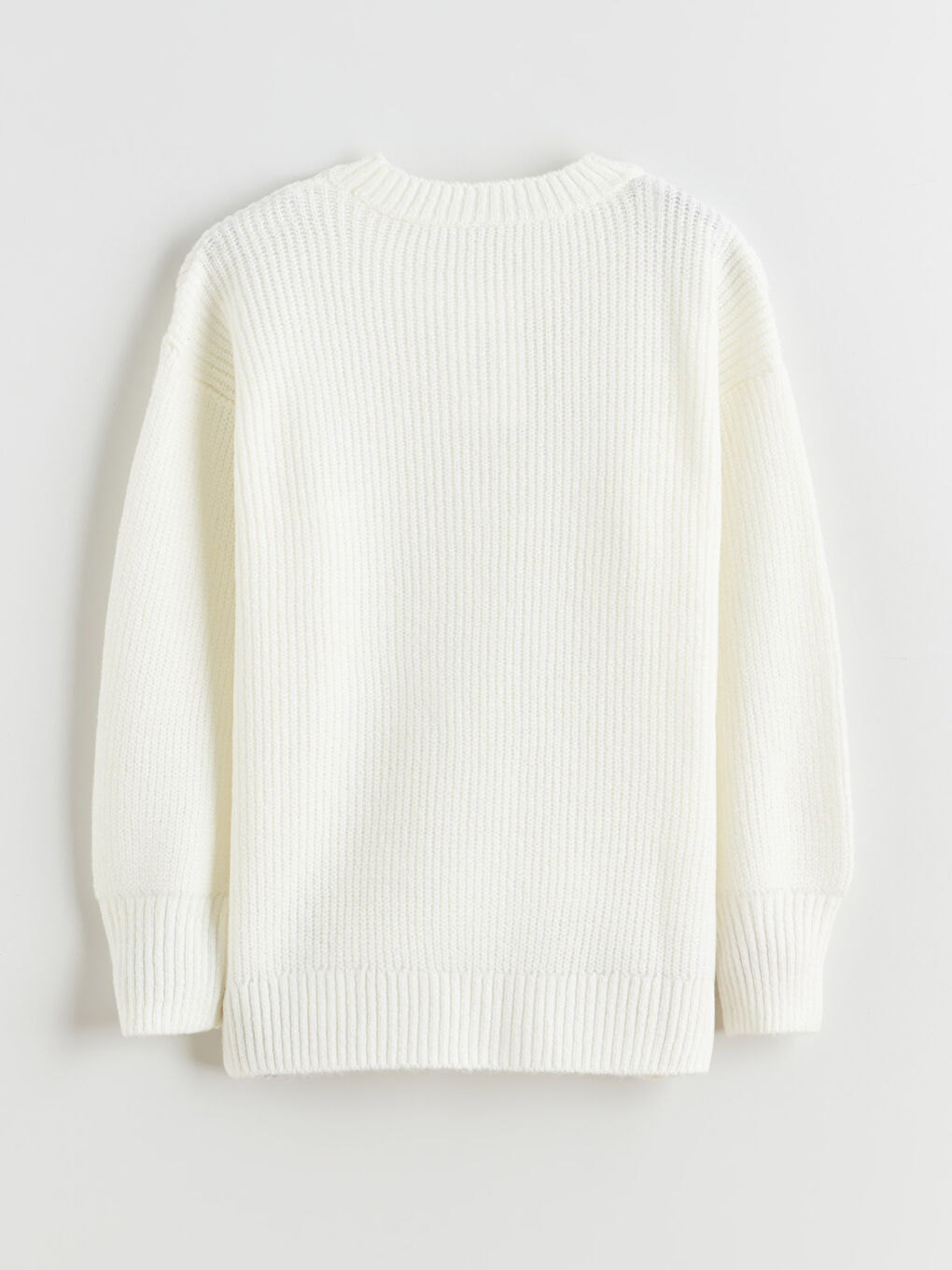 ژاکت بافتنی دخترانه یقه گرد Ecru