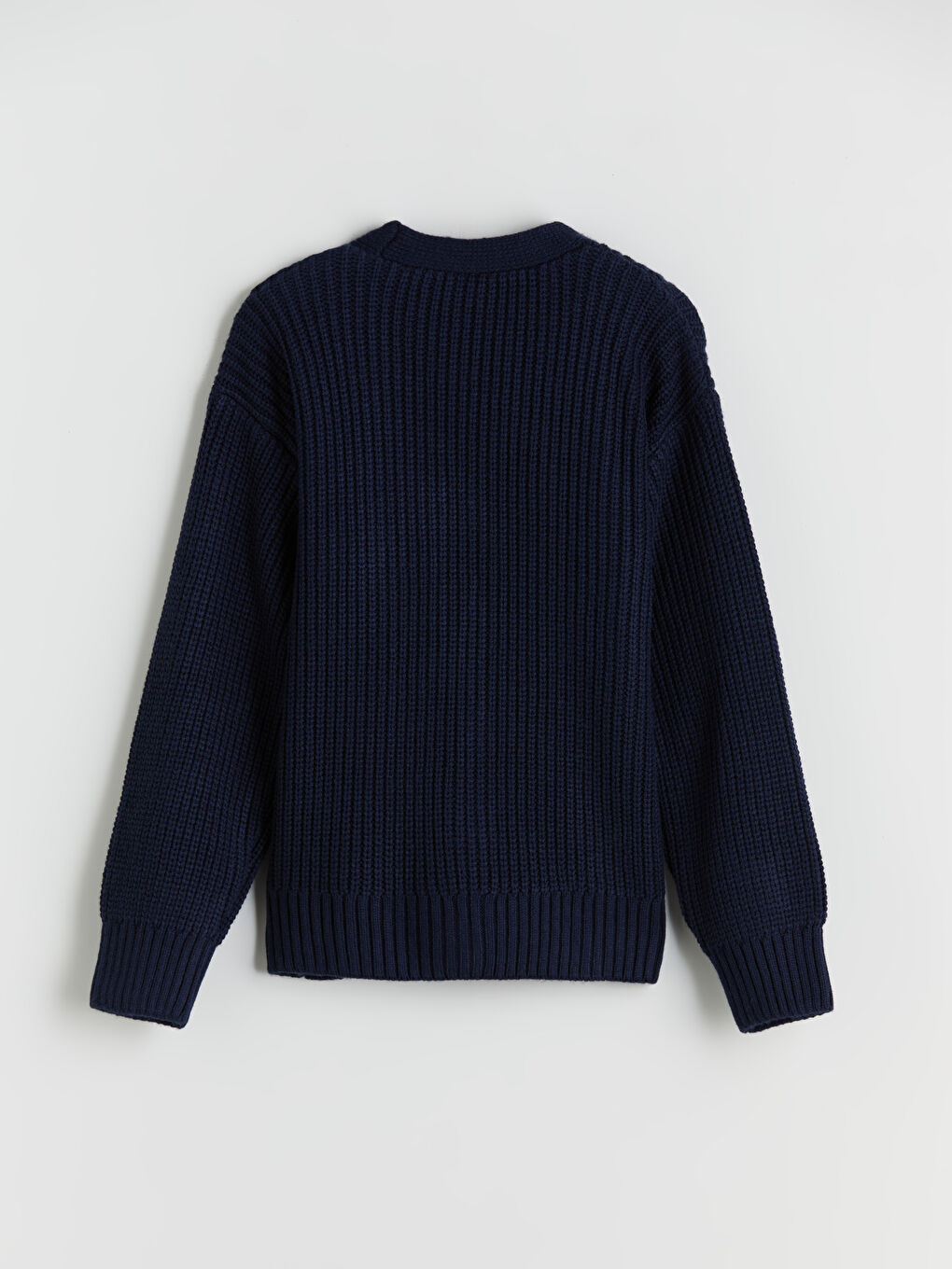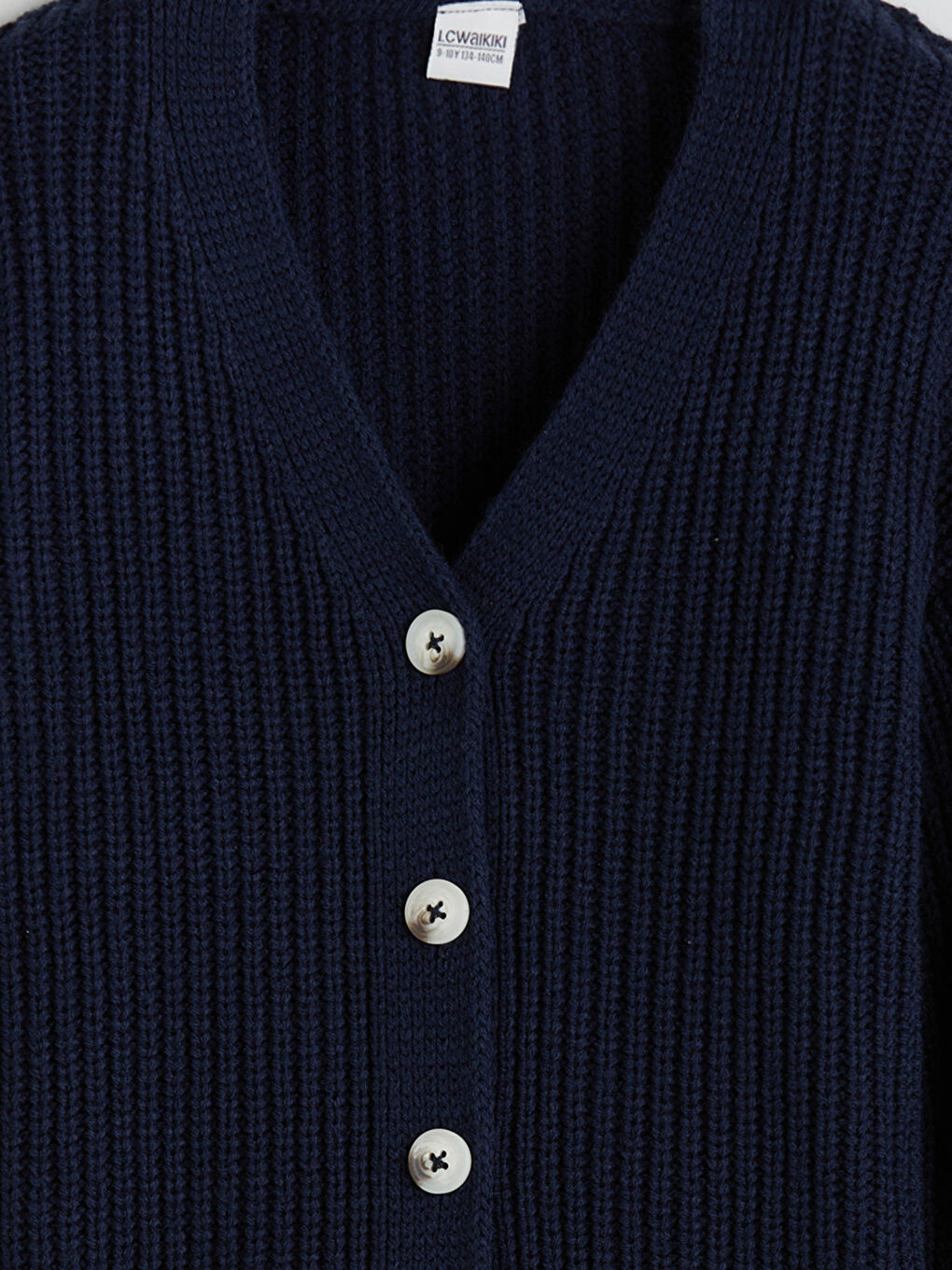 ژاکت بافتنی دخترانه یقه وی رنگ سرمه ای