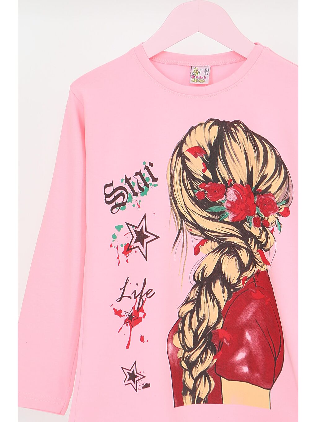 بادی دخترانه آستین بلند صورتی طرحدار نخی شانهشده – 27694