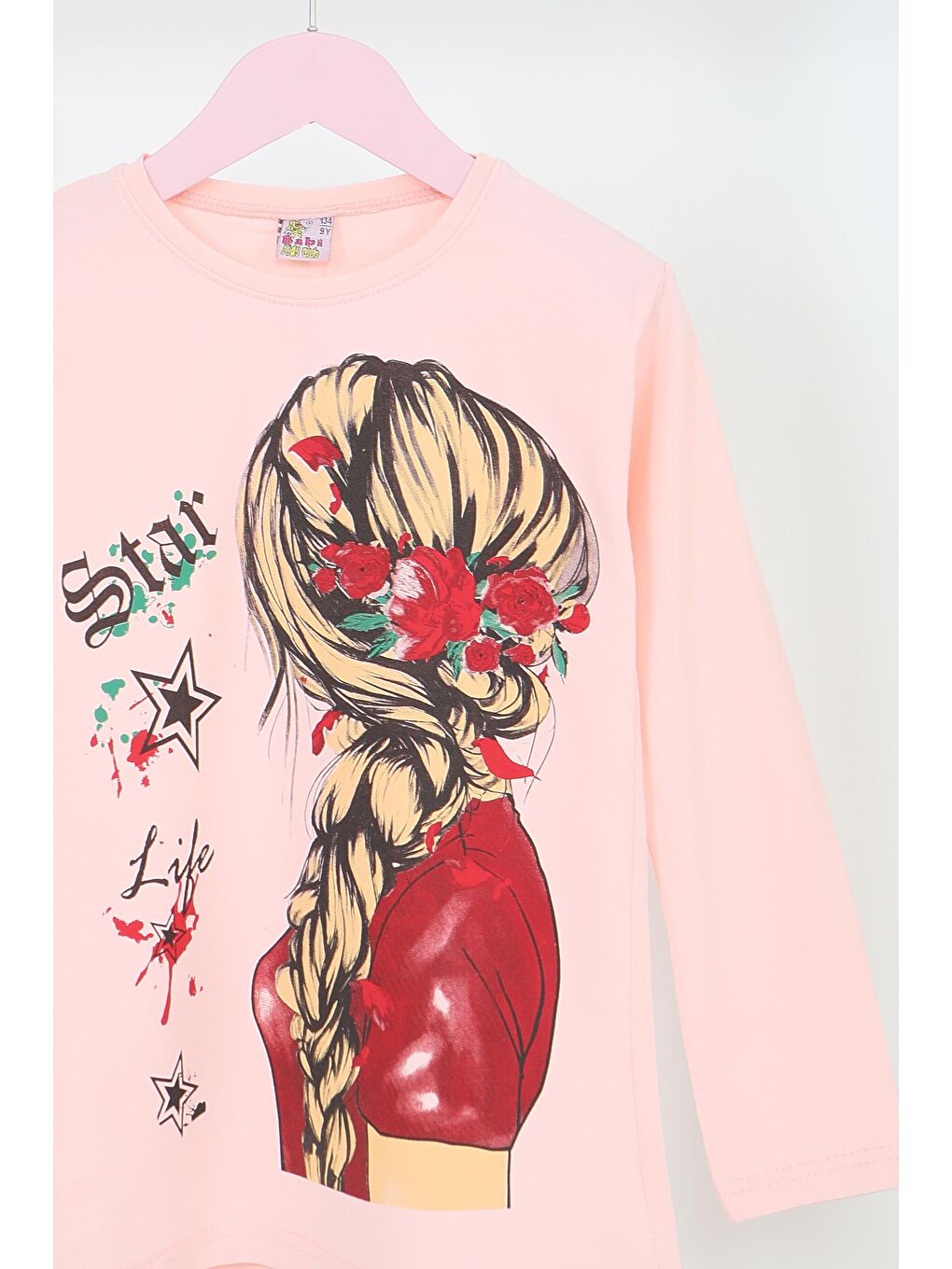 بادی دخترانه صورتی آستین بلند طرحدار نخی شانهشده – 27694