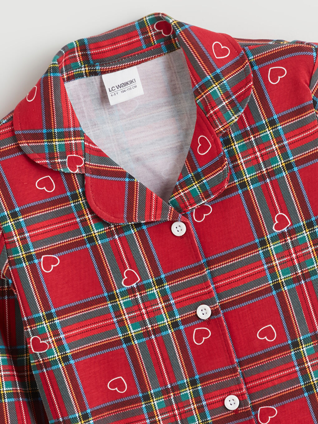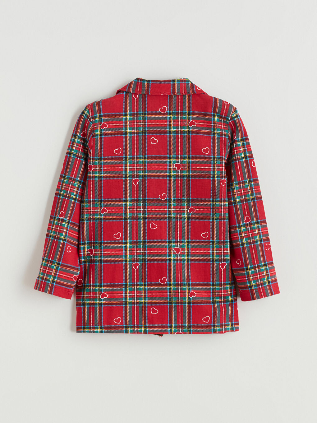 این تاپ دخترانه طرح چهارخانه و طرح قلب از ۱۰۰٪ پنبه ساخته شده است. دارای یقه پیراهنی، آستین بلند و دکمه‌دار در جلو است.