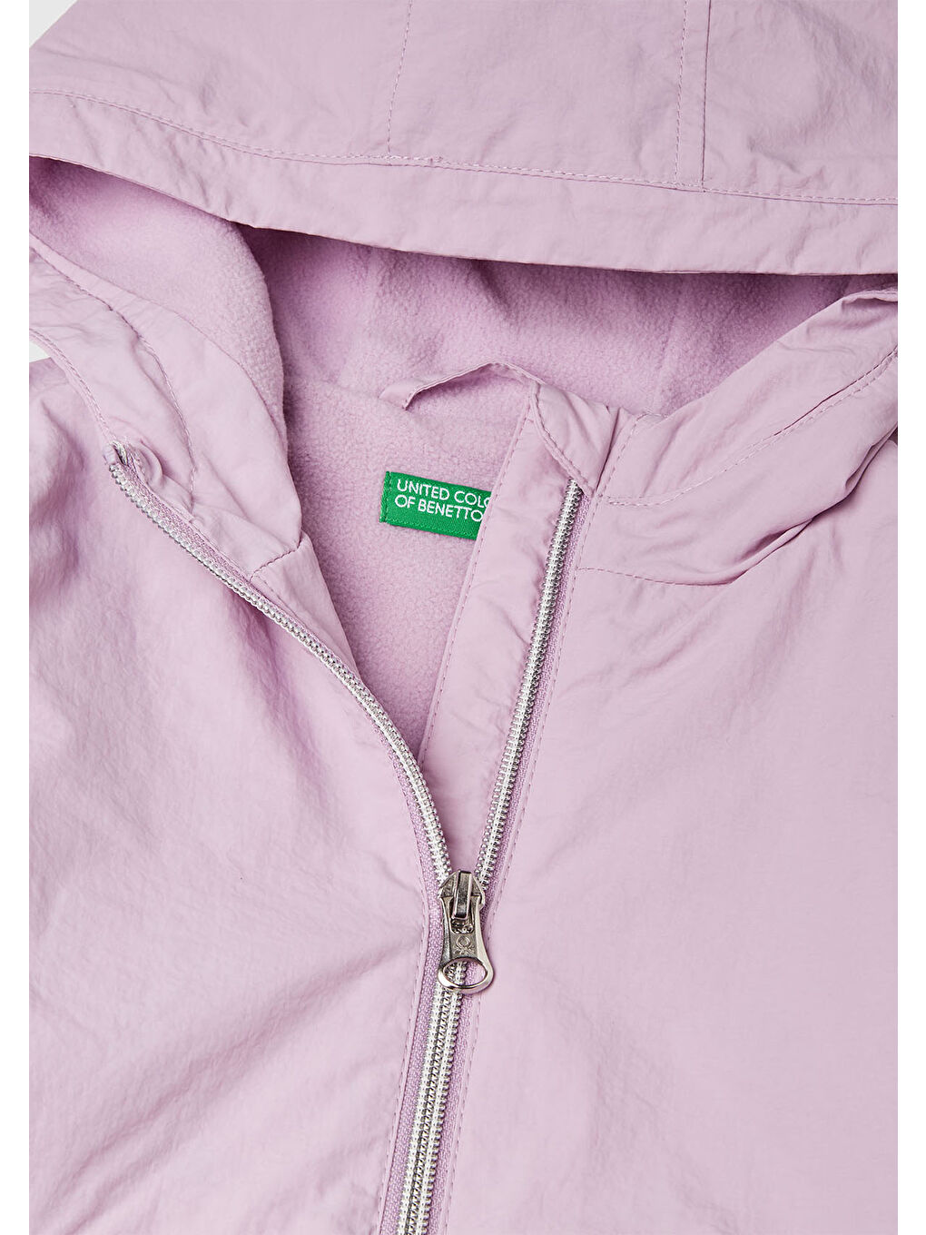 بارانی کلاه دار دخترانه یاسی رنگ کمر کشی و آستین دار زیپ دار