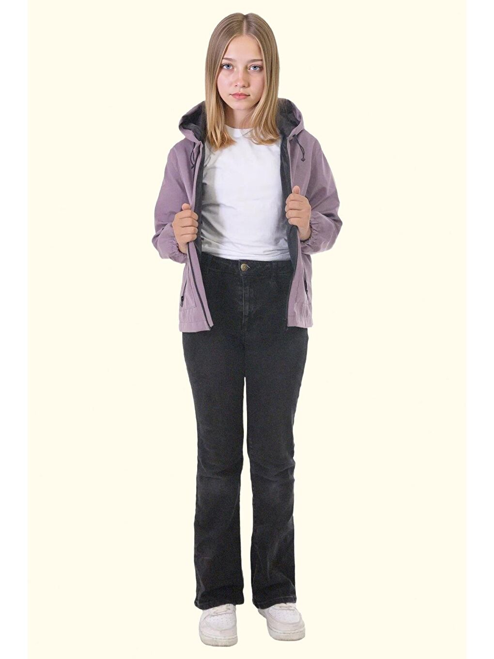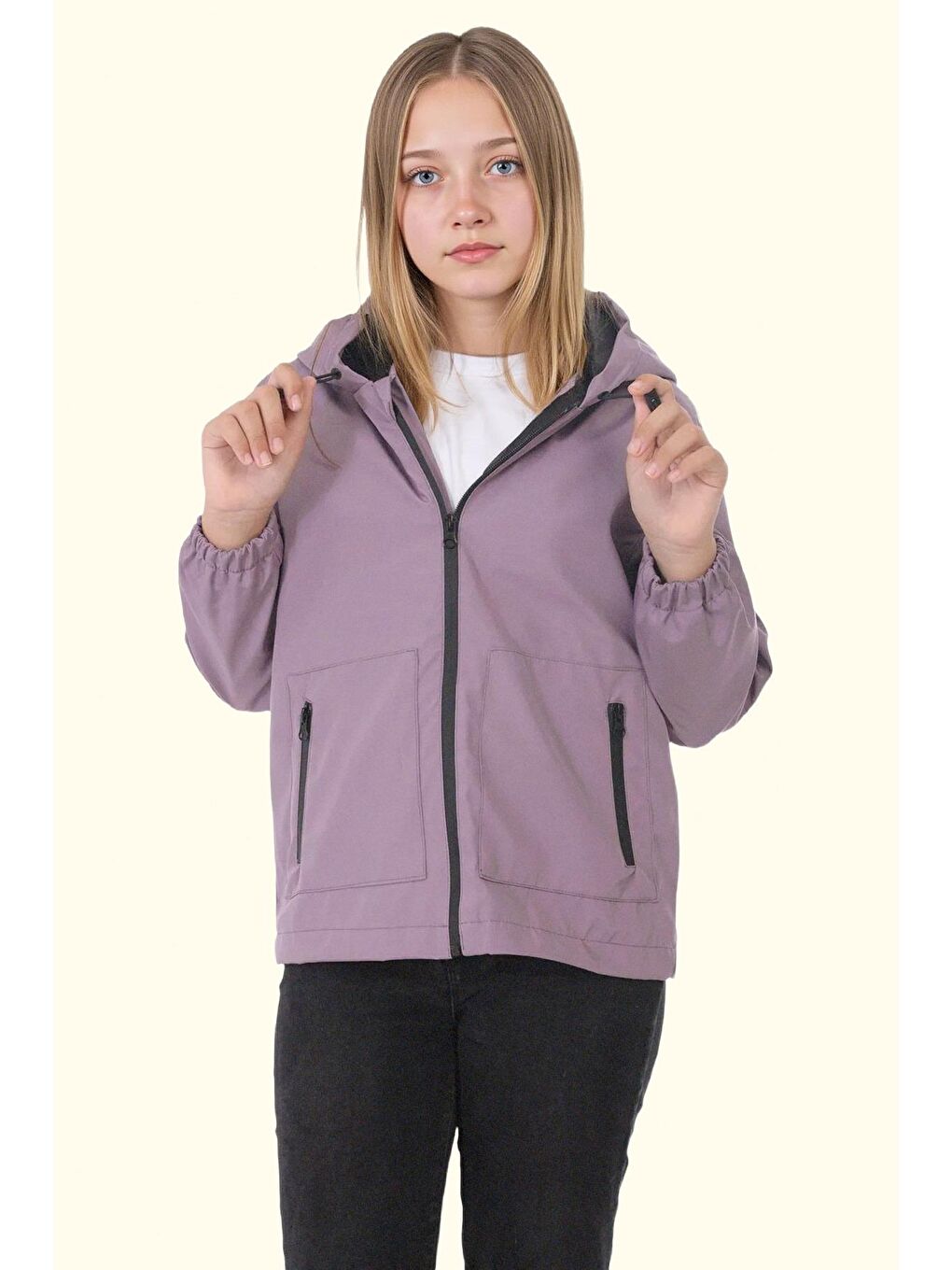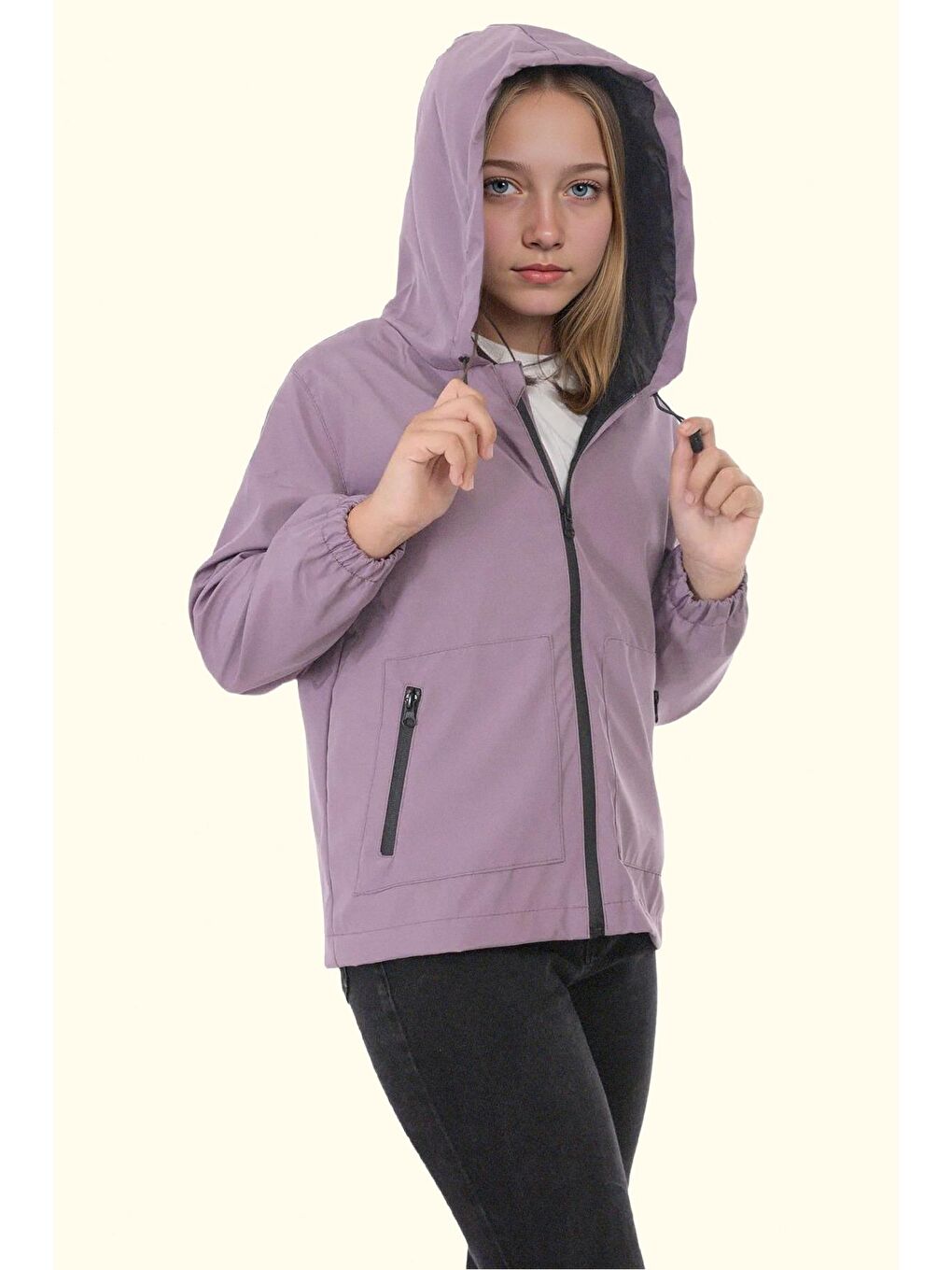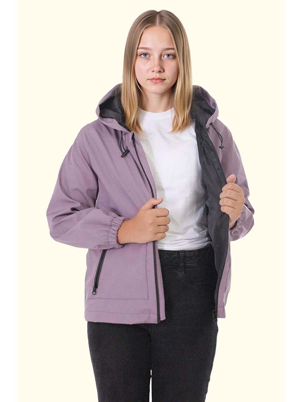 بارانی دخترانه کلاه دار دو زیپ دار ضد آب و باد با آستر آلو