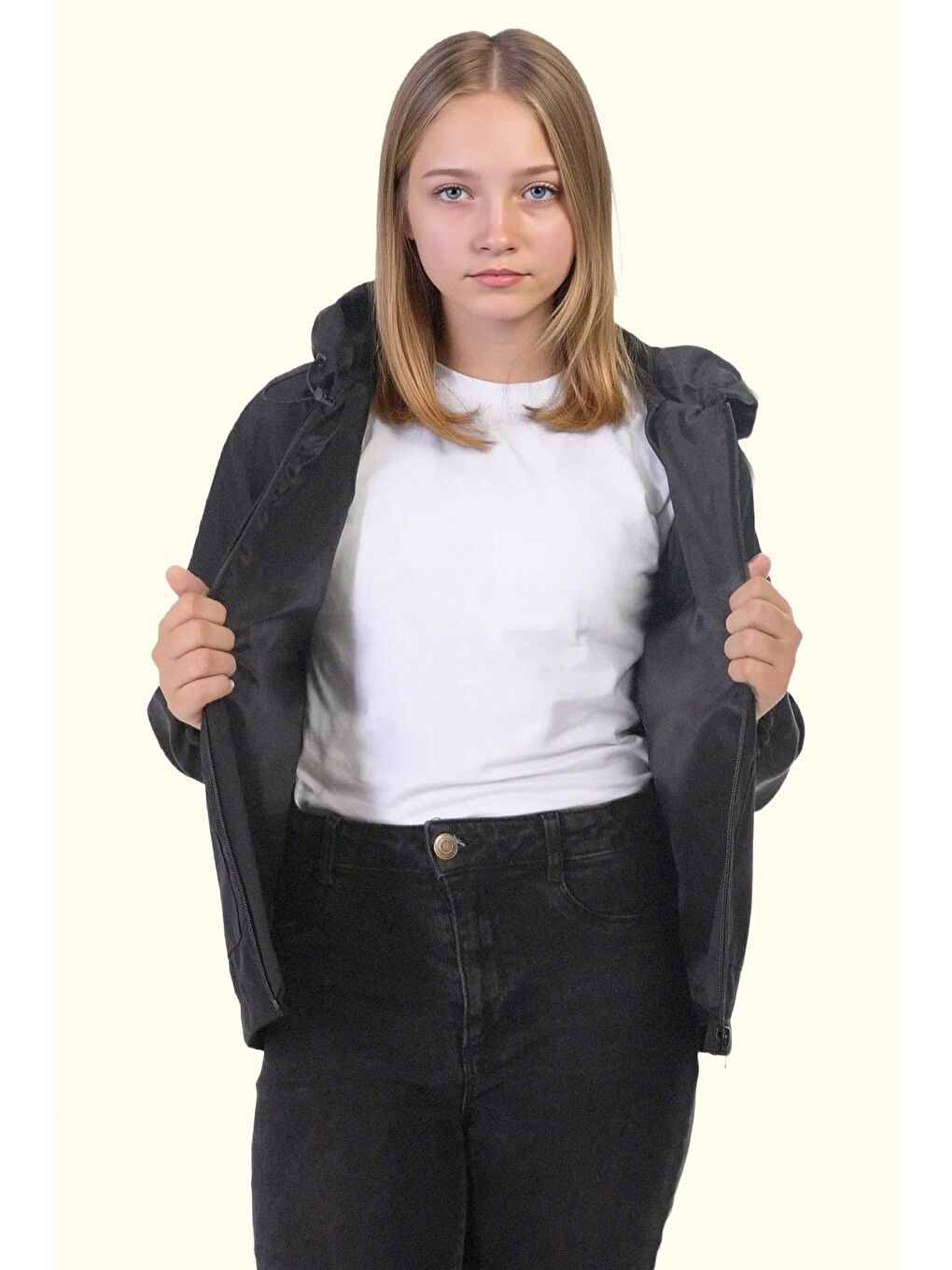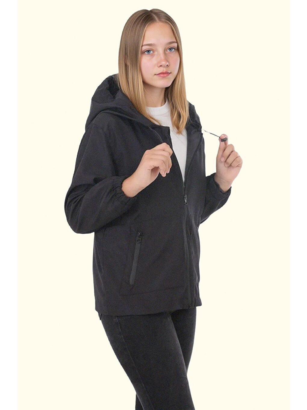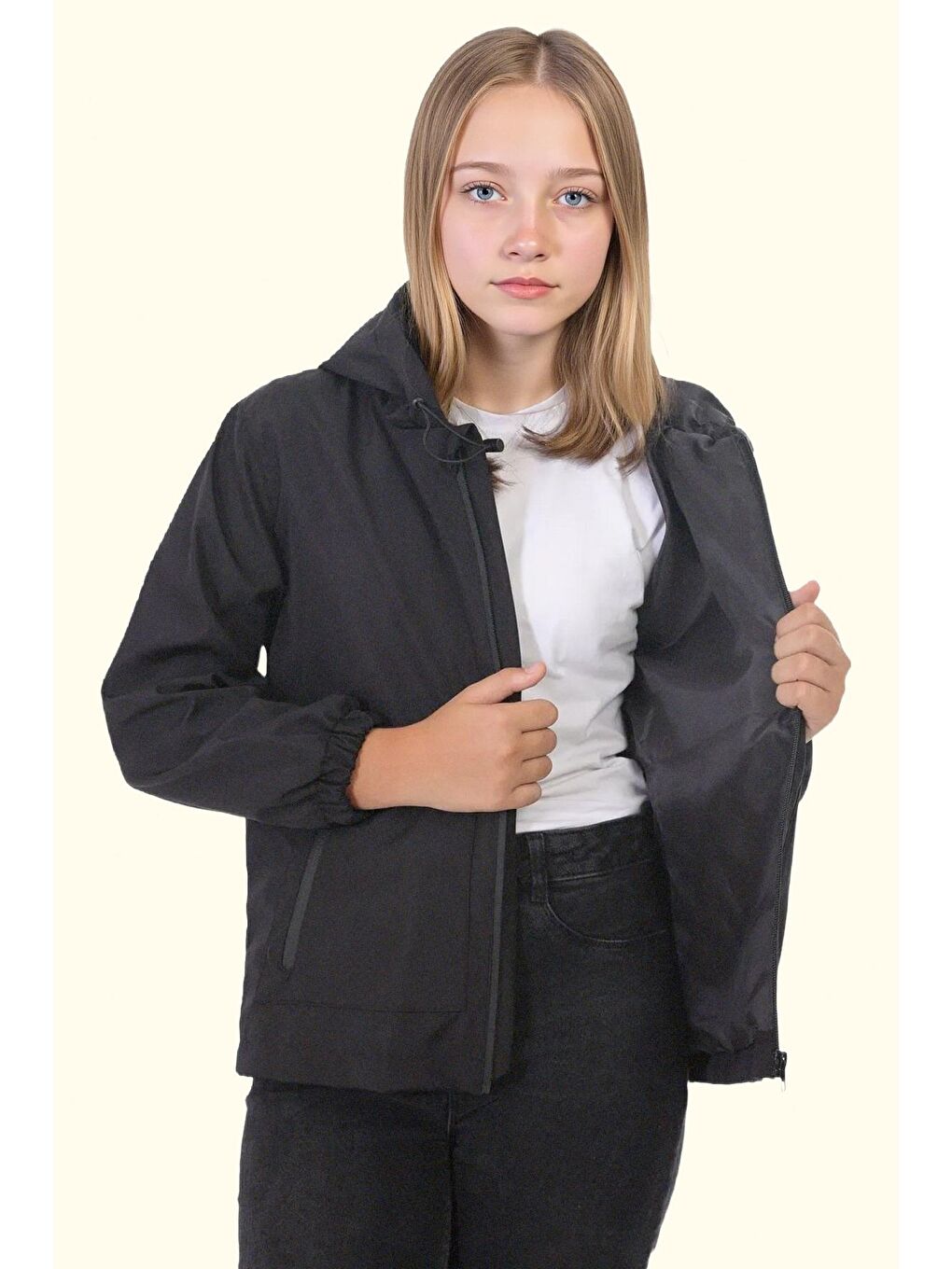 بارانی دو زیپ دار کلاه دار ضد آب و باد دخترانه مشکی