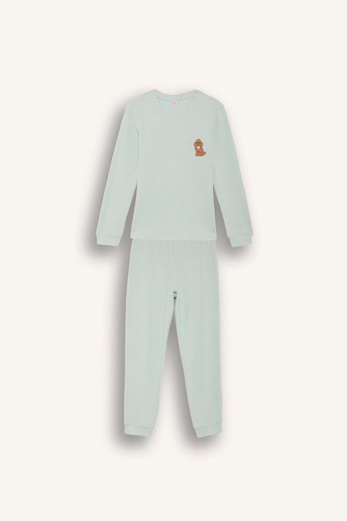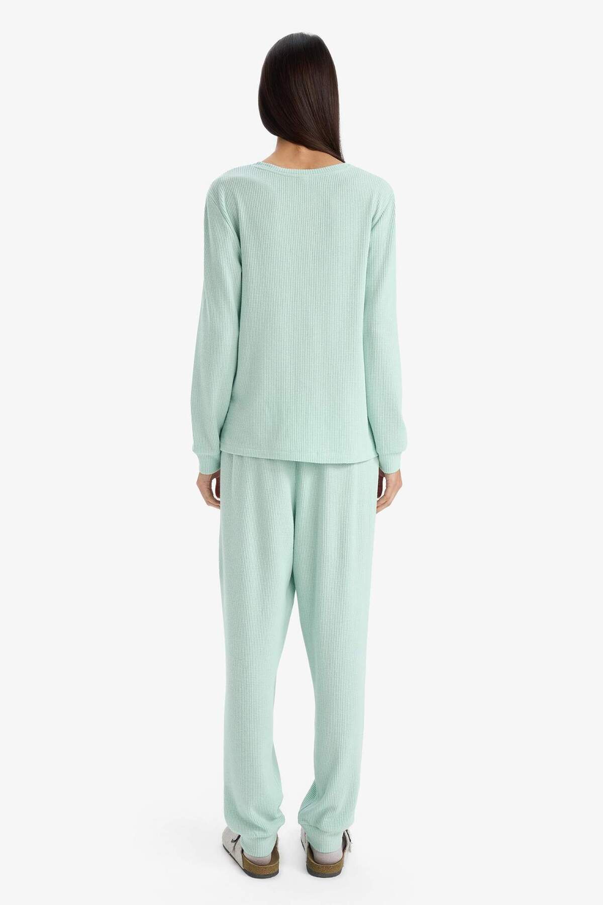 دفاکتو ست لباس خواب زنانه مدل وافل معمولی، آستین بلند، تاپ و پایینتنه، G1354AX25AU