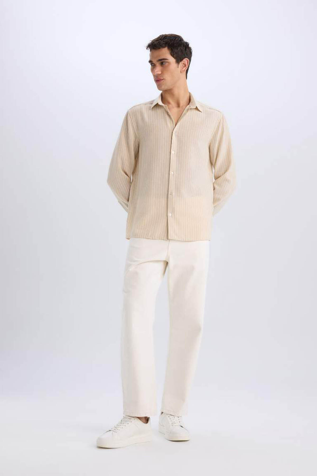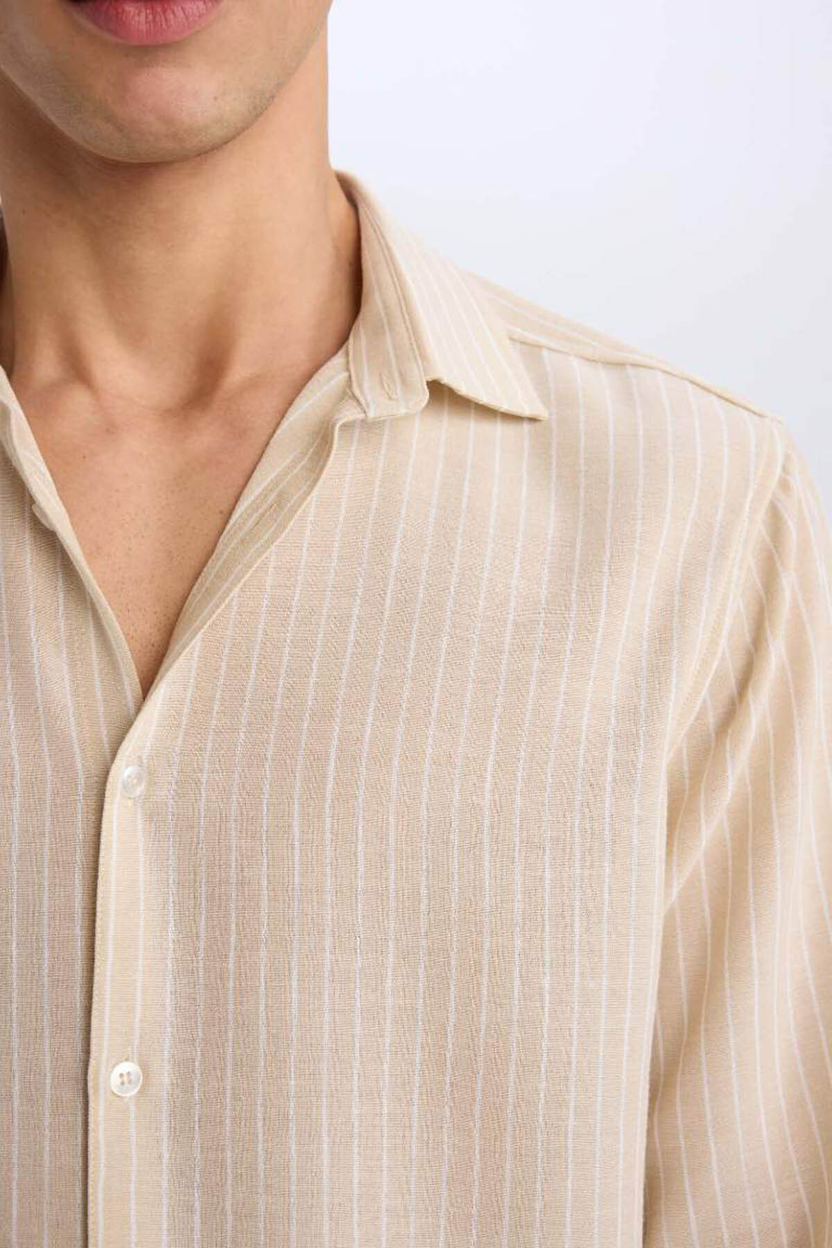 دفاکتو پیراهن مردانه طرح کتان معمولی بژ E3308AX/BG106