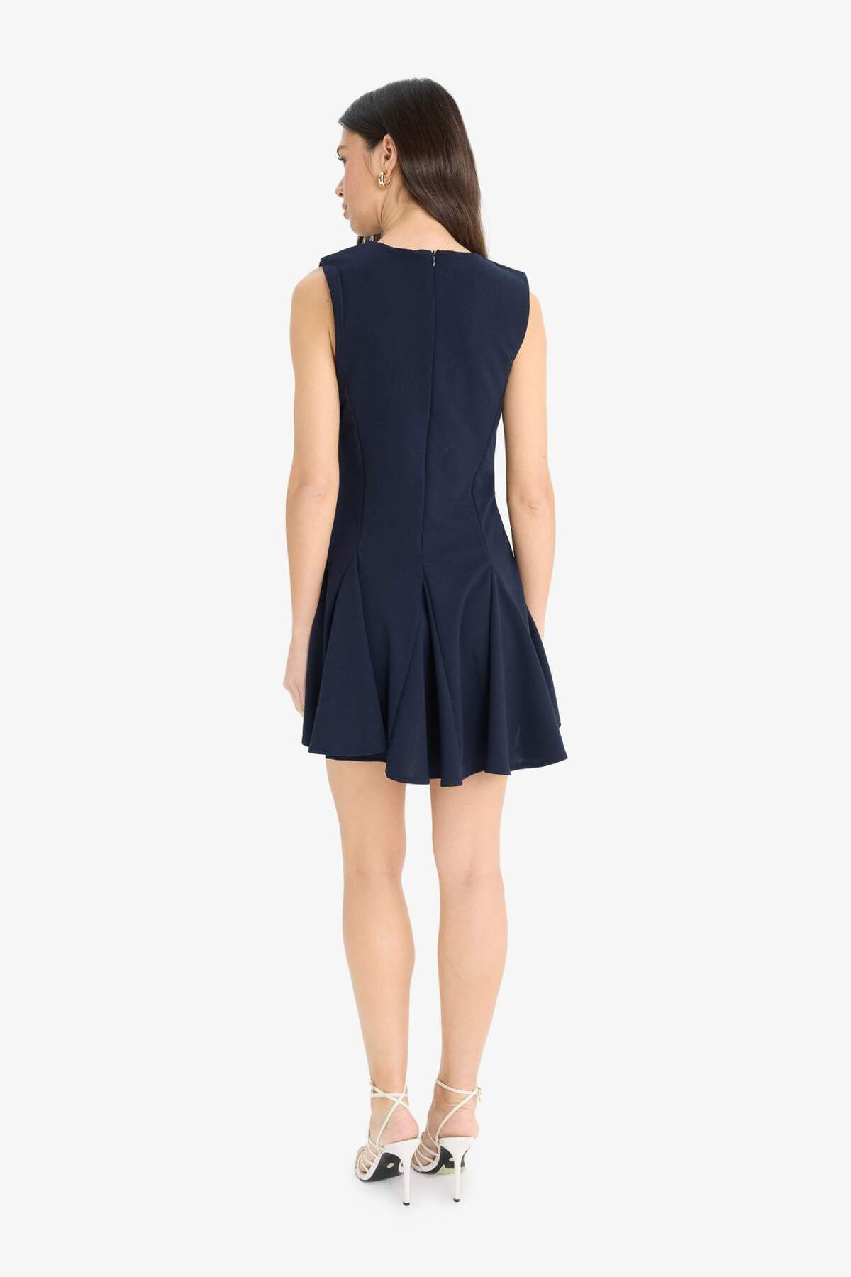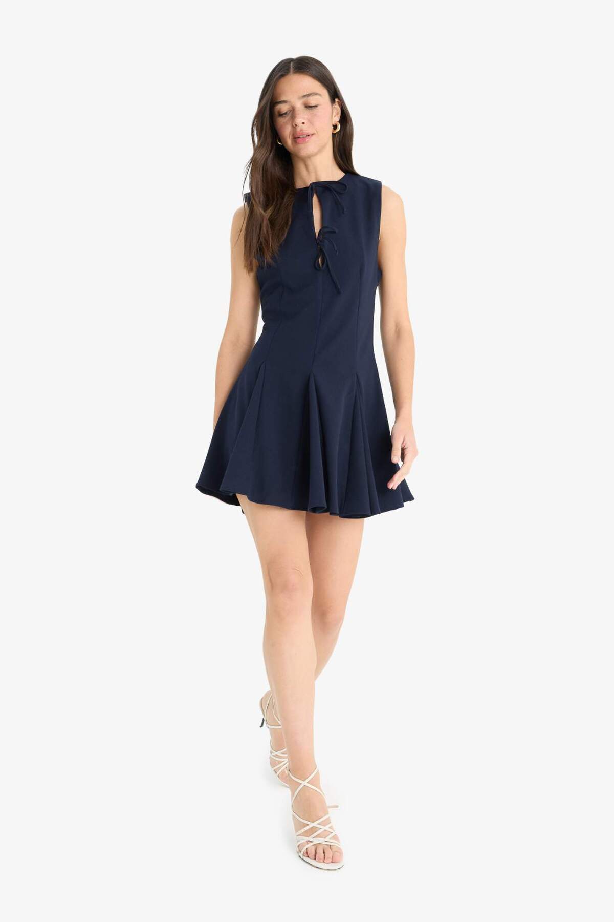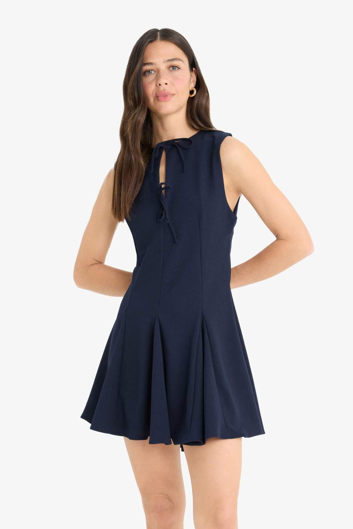 دفاکتو پیراهن تابستانی کوتاه یقه گرد پلیسه دار کرپ بدون آستین F6502ax25sm