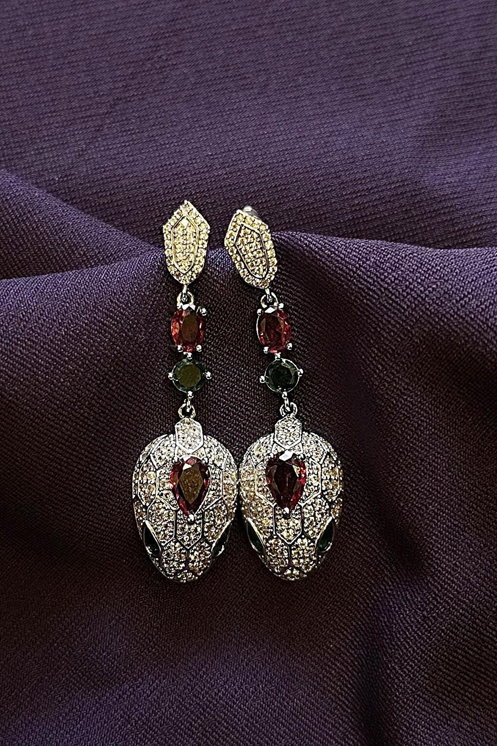 گوشواره مار نقره ای با سنگ زیرکون تعبیه شده