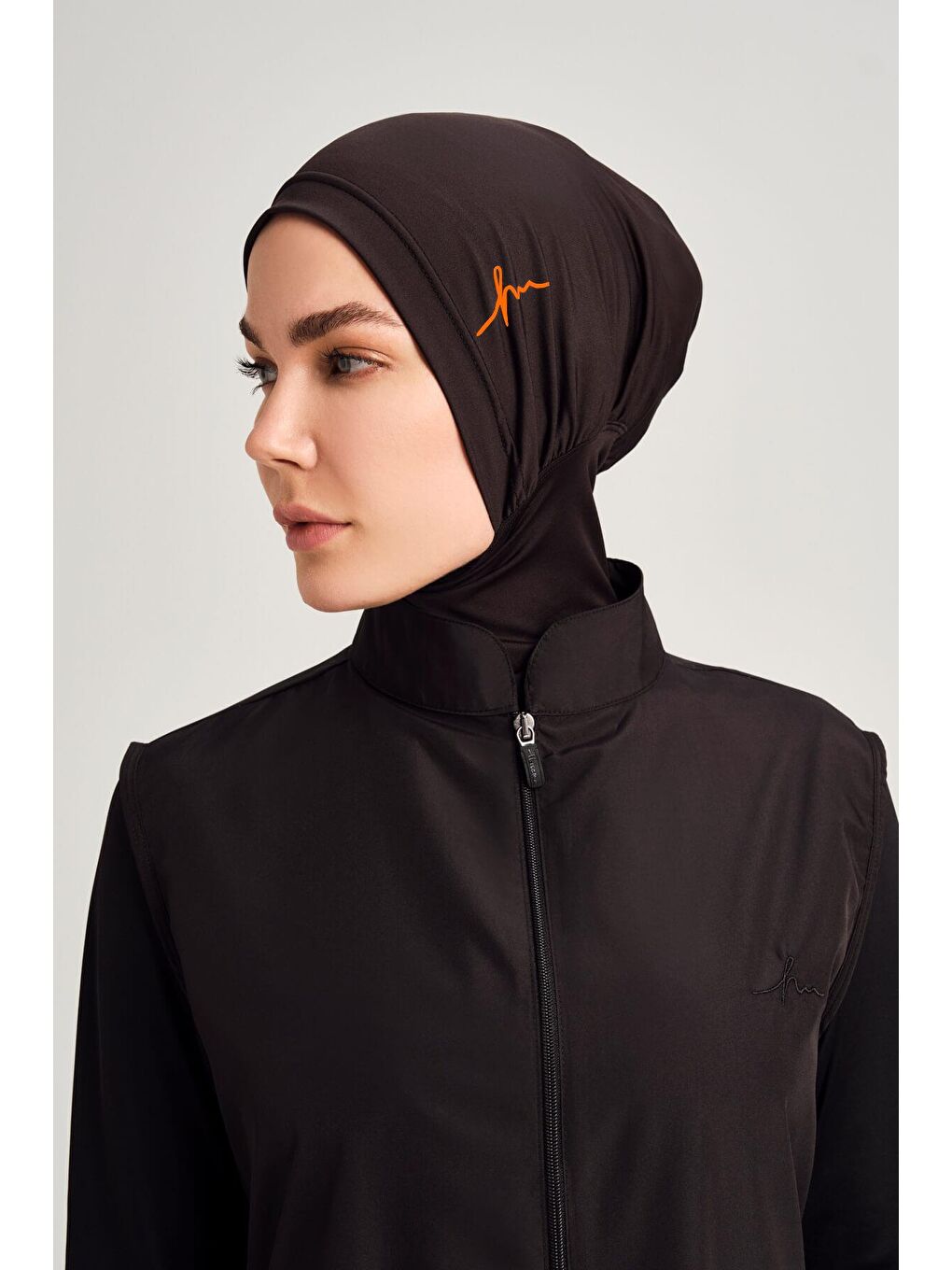 کلاه شنا حجاب مشکی با لوگوی نارنجی جزئیات ۱۰۰۶
