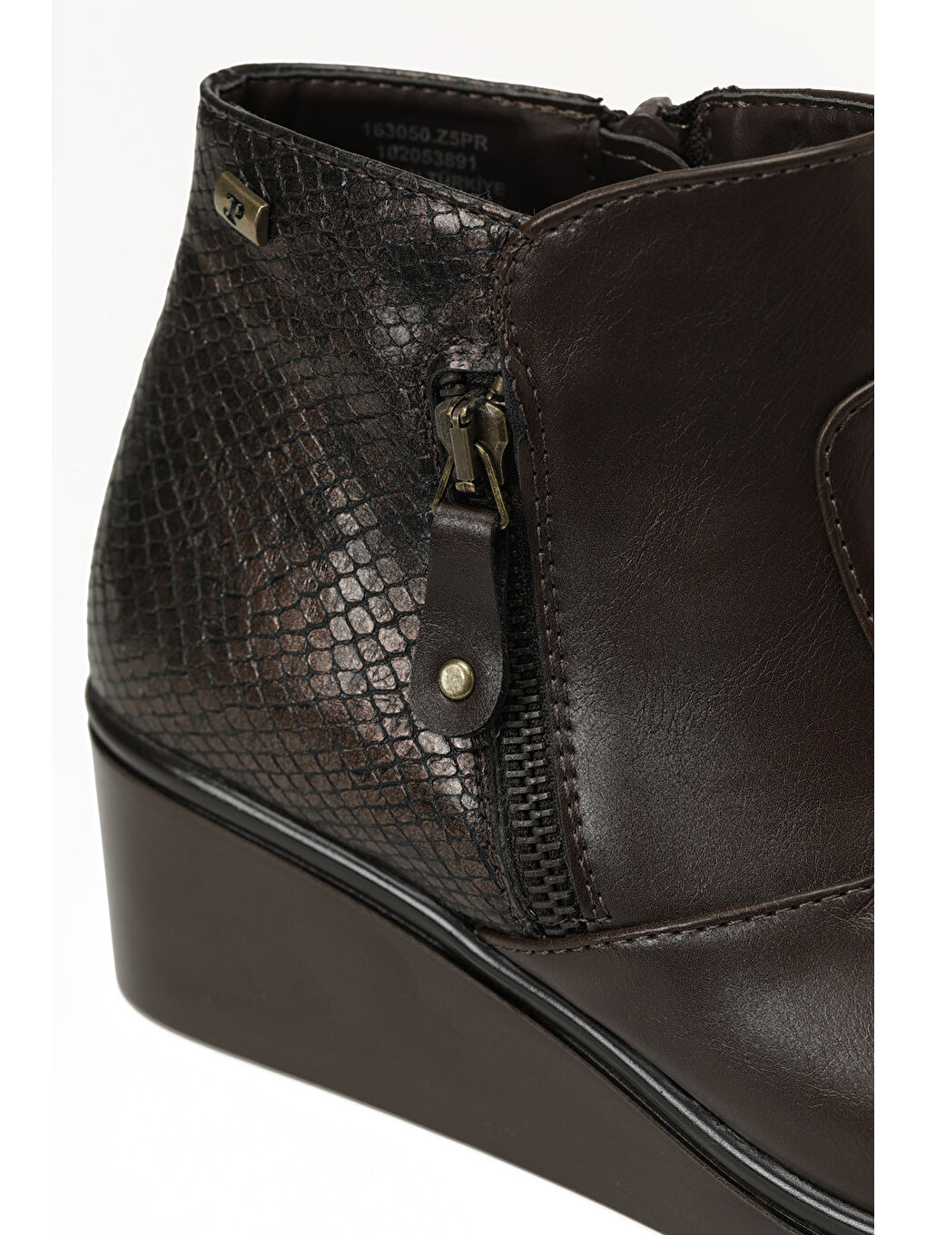 چکمه پاشنه گوه زنانه قهوهای مدل ۱۶۳۰۵۰.Z5PR
