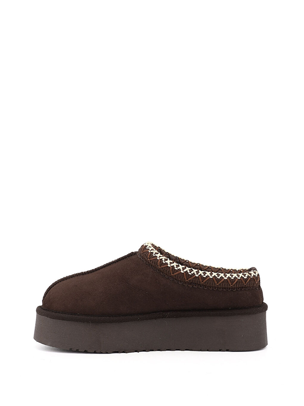 دمپایی خزدار زنانه قهوه‌ای قهوه‌ای مدل BROWN W Tazz با کفی ضخیم از چرم اصل