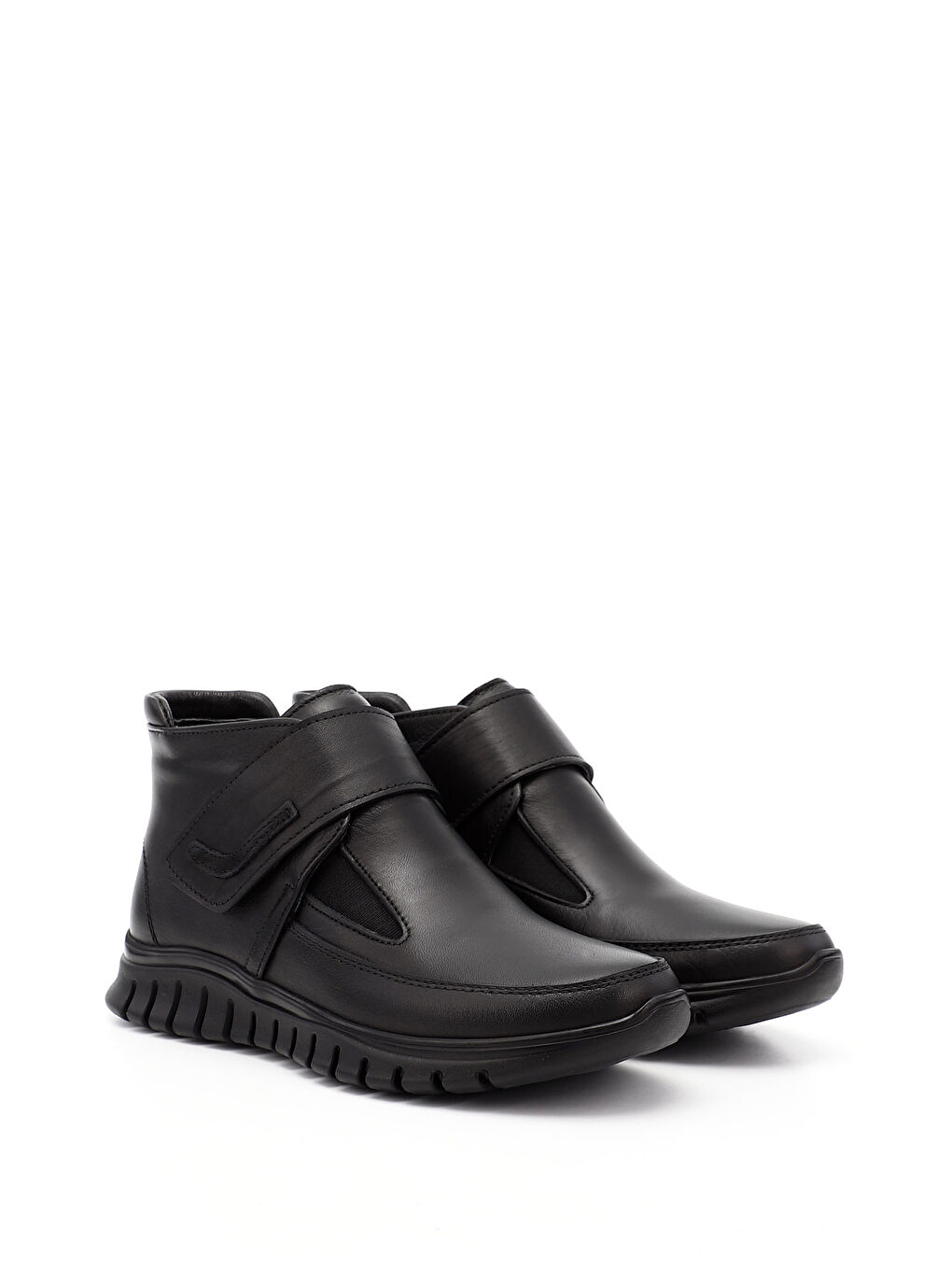 چکمههای راحتی زنانه مشکی روشن با چسب ولکرو از جنس چرم اصل