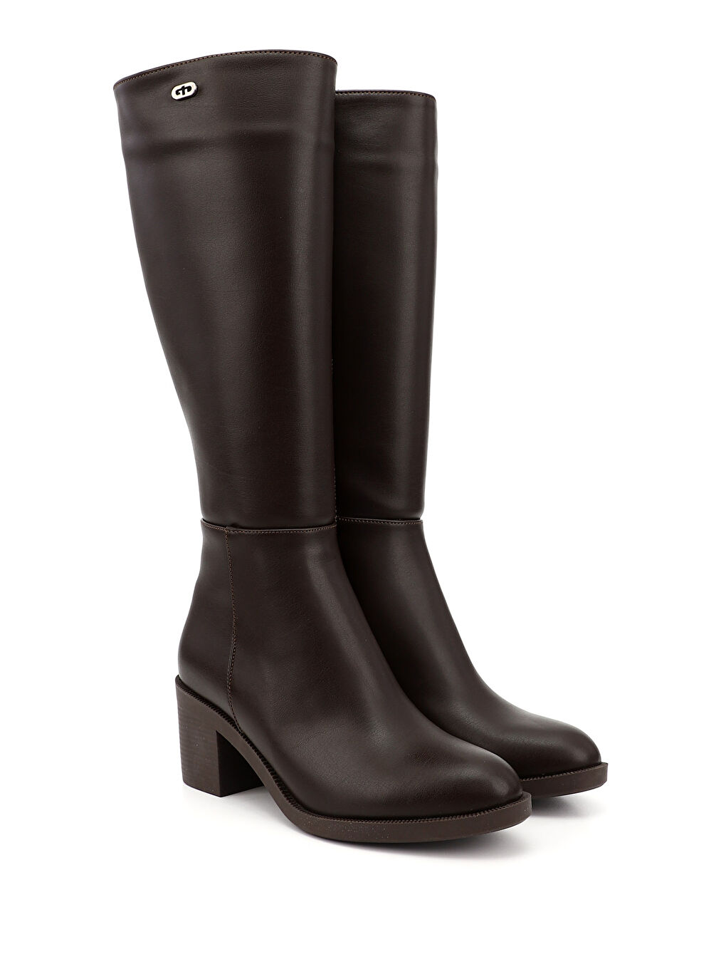 چکمههای زنانه قهوهای پاشنهدار ضخیم زیپدار قهوهای شکلاتی