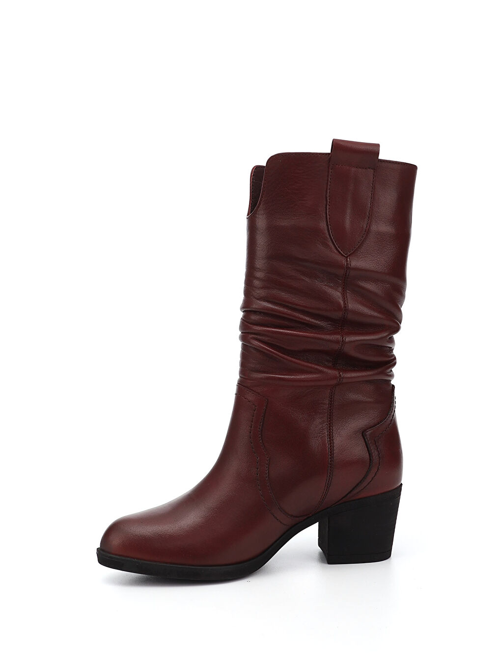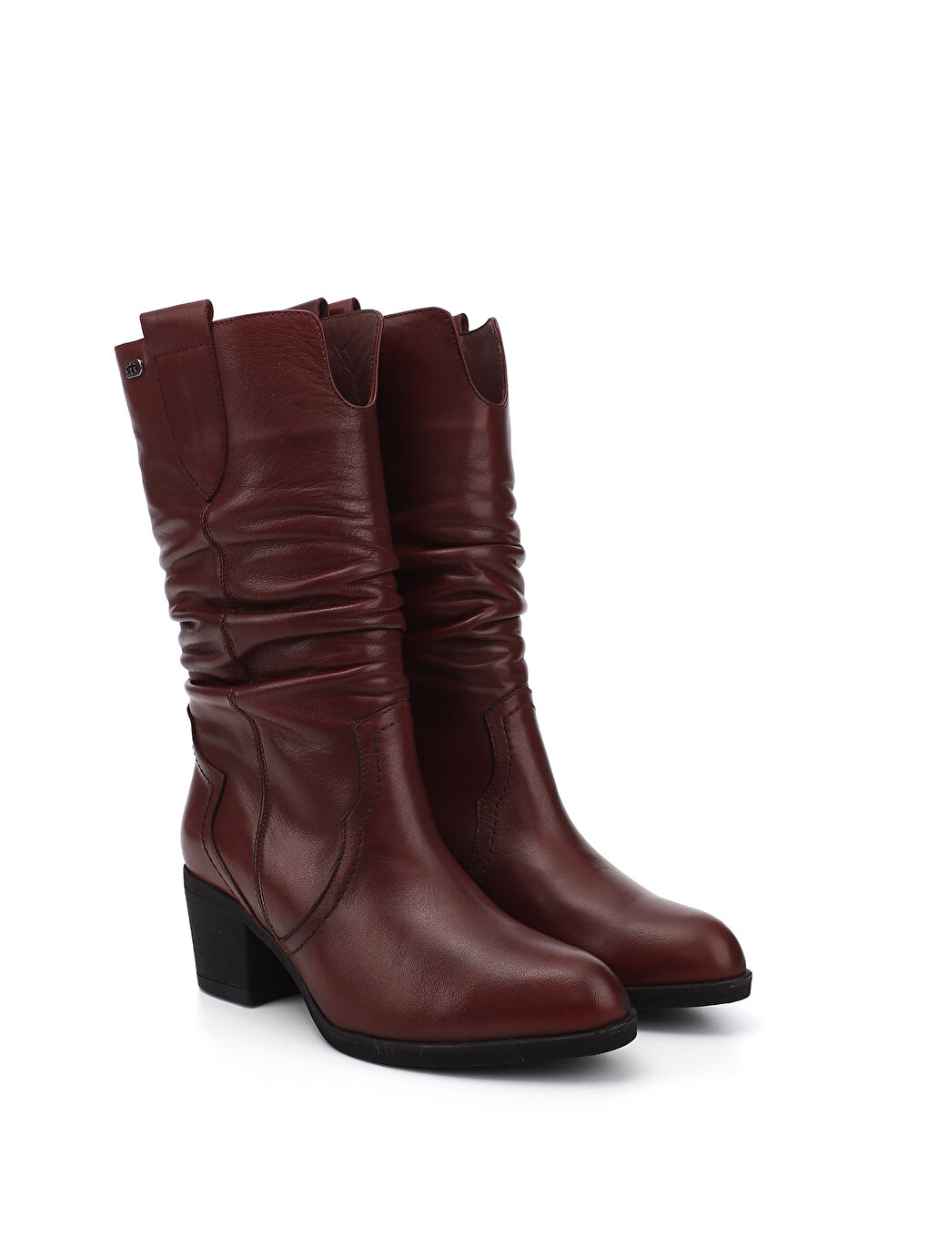 چکمه‌های زنانه Bordo پاشنه بلند ضخیم از جنس چرم اصل Bordo