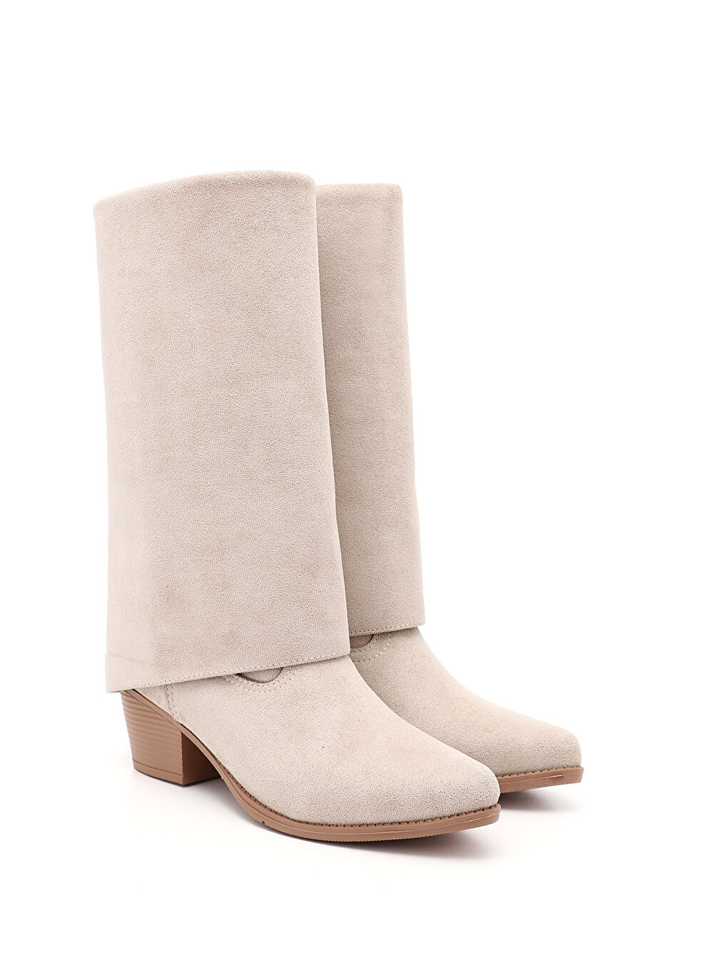 چکمههای کابویی پاشنه بلند زنانه بژ نوک تیز بژ