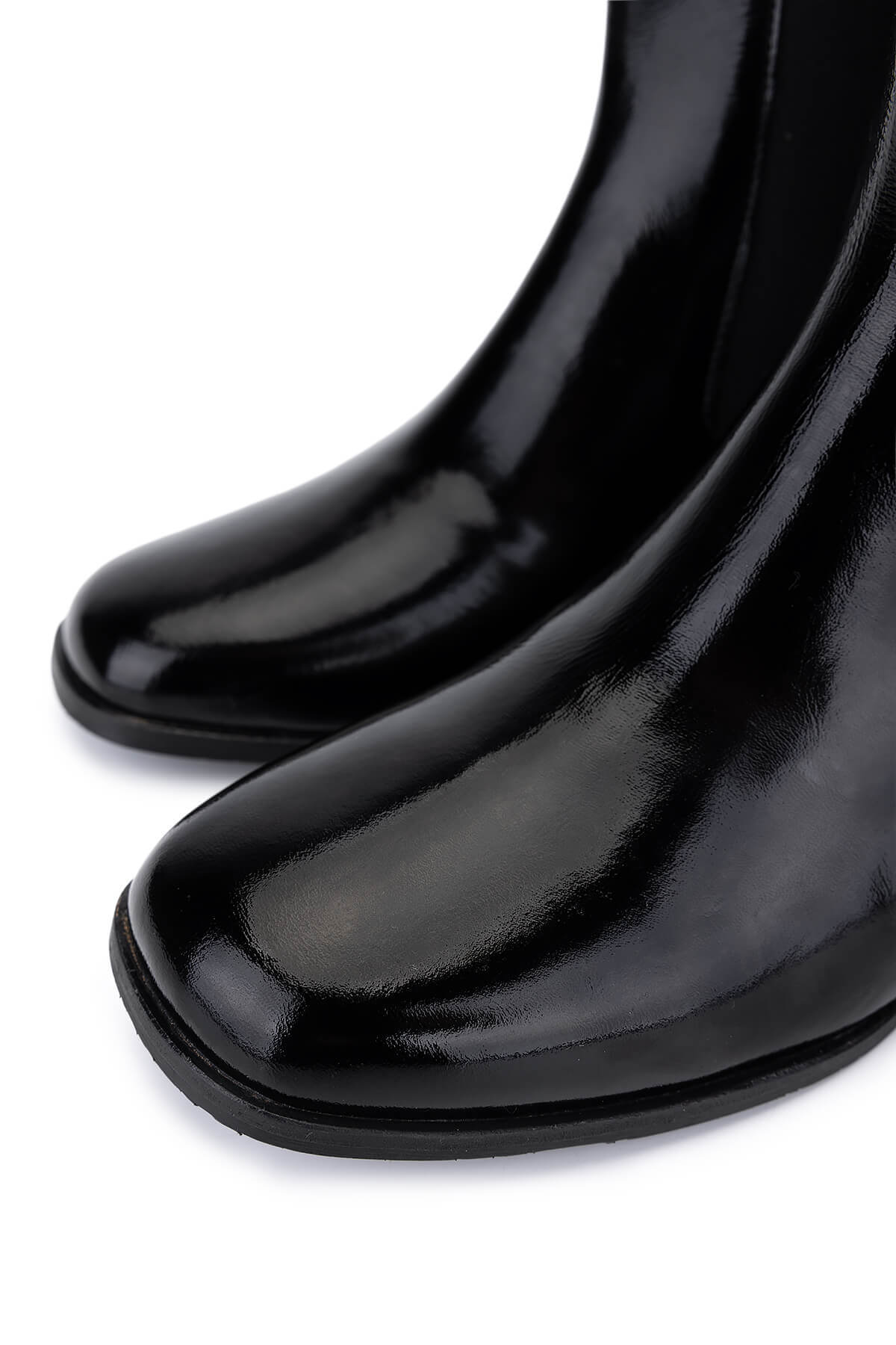 تامر تانجا چکمههای پاشنهدار چرمی ورنی مشکی زنانه اصل