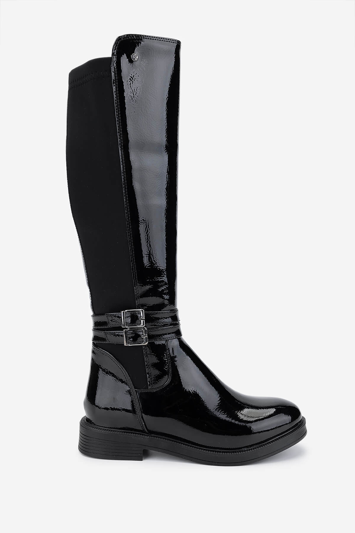 تامر تانجا چکمههای راحتی زنانه چرم وگان مشکی ورنی